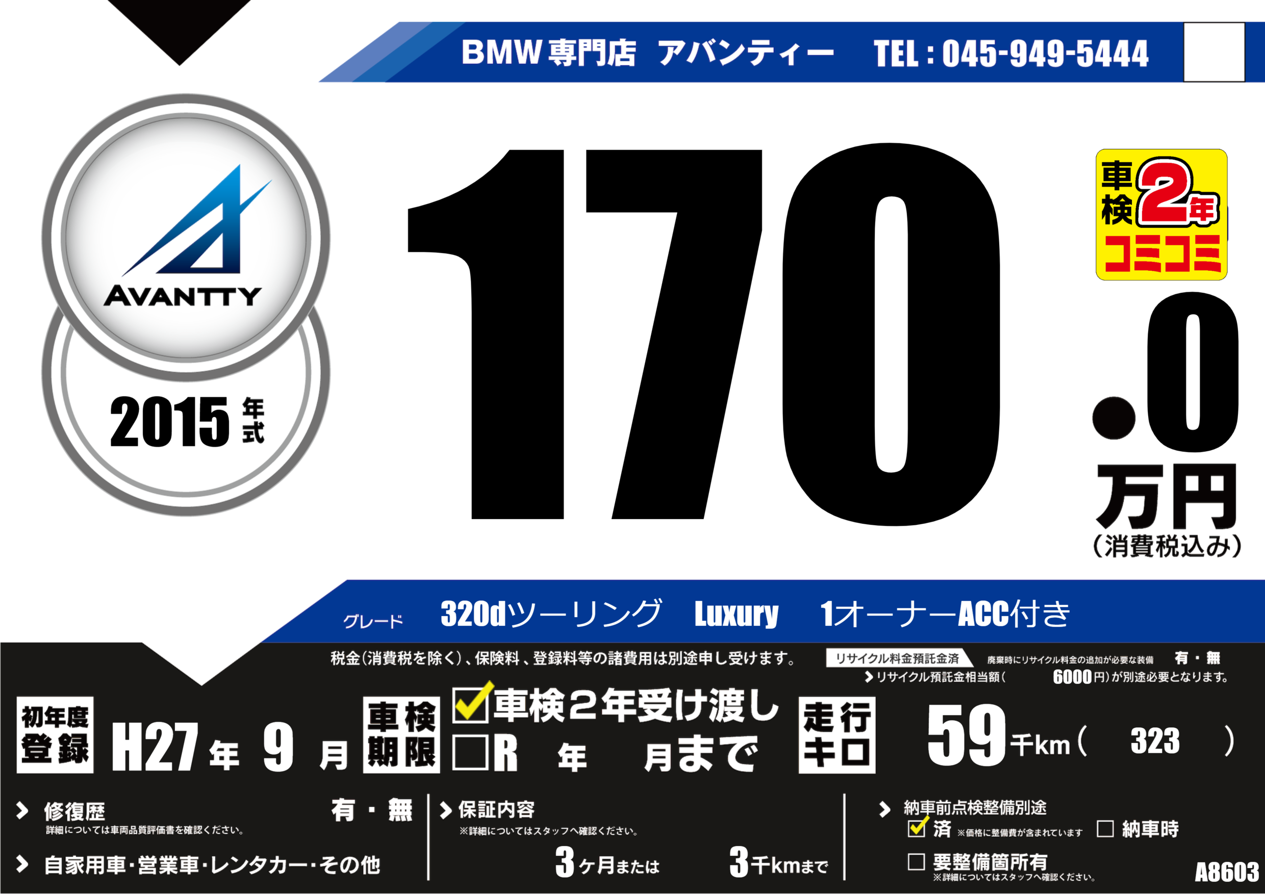 | 走行キロ | 5.9万km | 初年度登録 | H27年9月 |