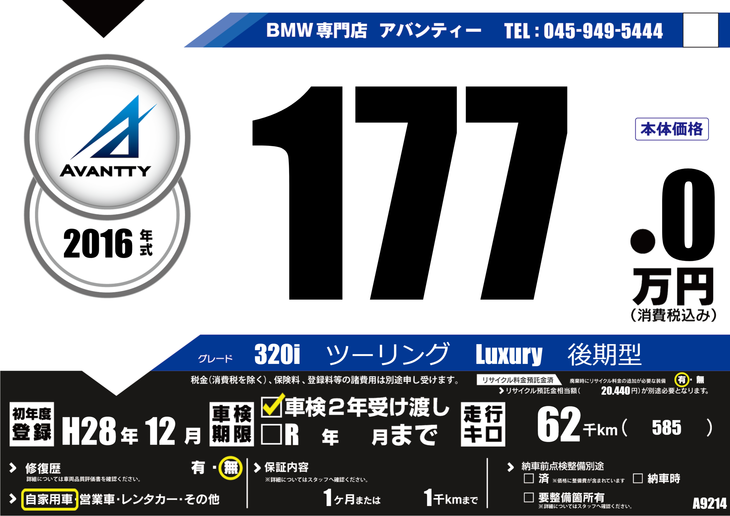| 走行キロ | 6.2万km | 初年度登録 | H28年12月 |