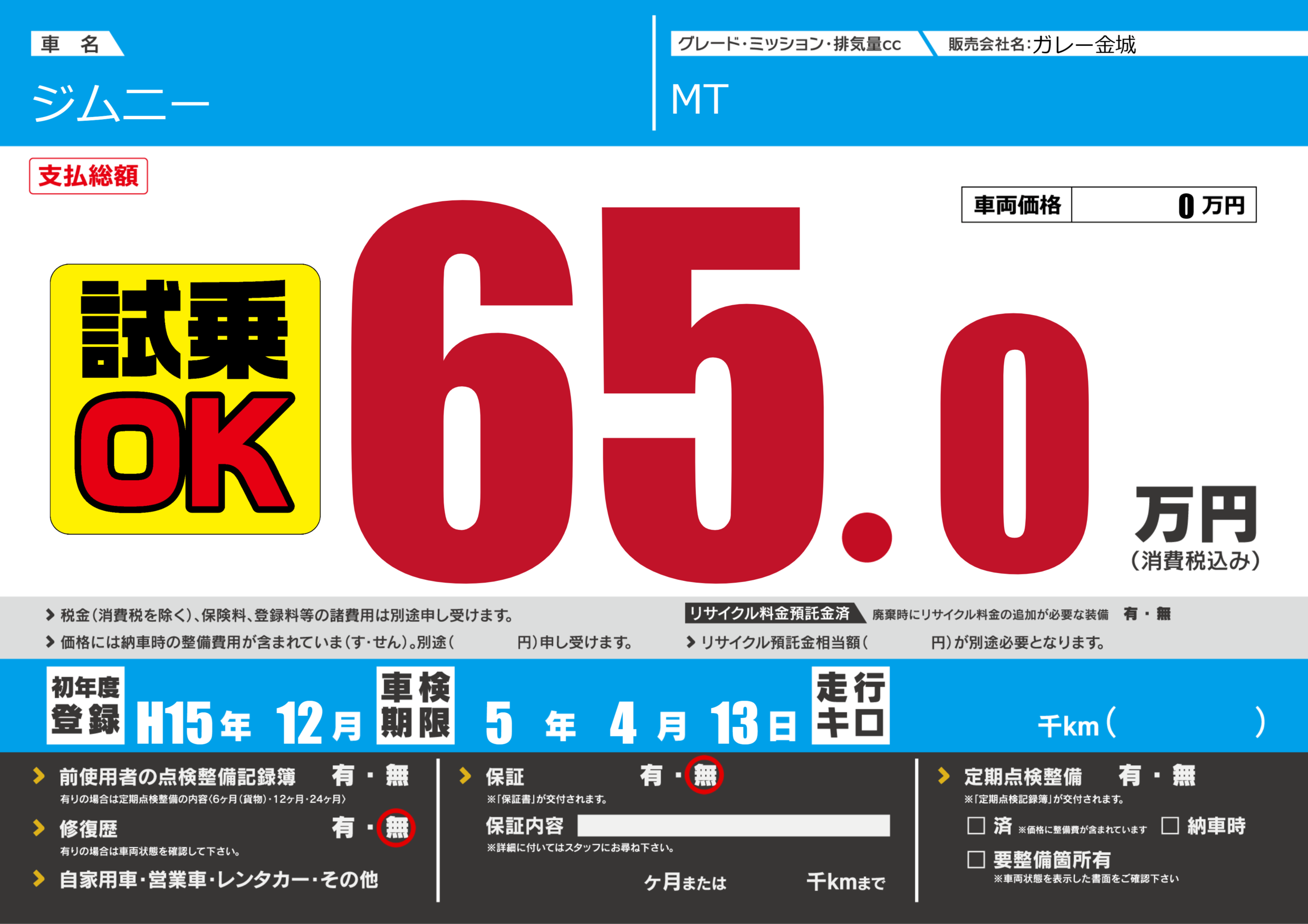 初年度登録 H15年12月