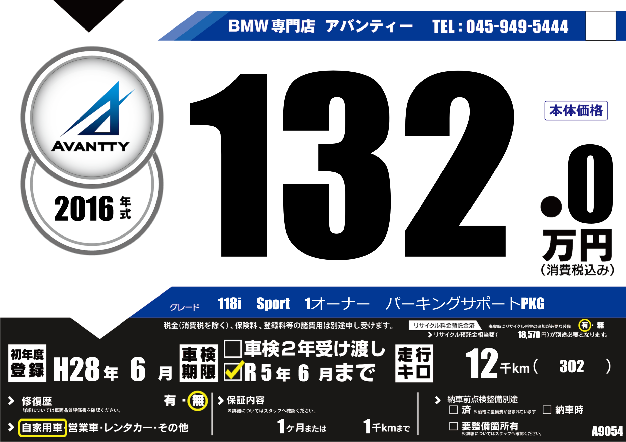 | 走行キロ | 1.2万km | 初年度登録 | H28年6月 |