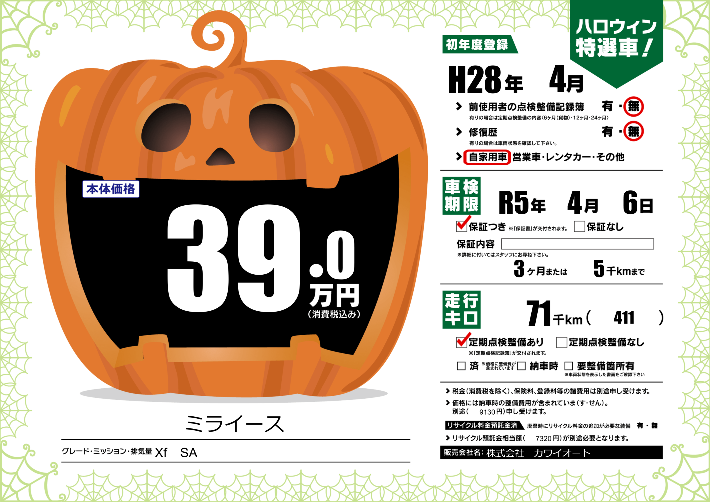 | 走行キロ | 7.1万km | 初年度登録 | H28年4月 |