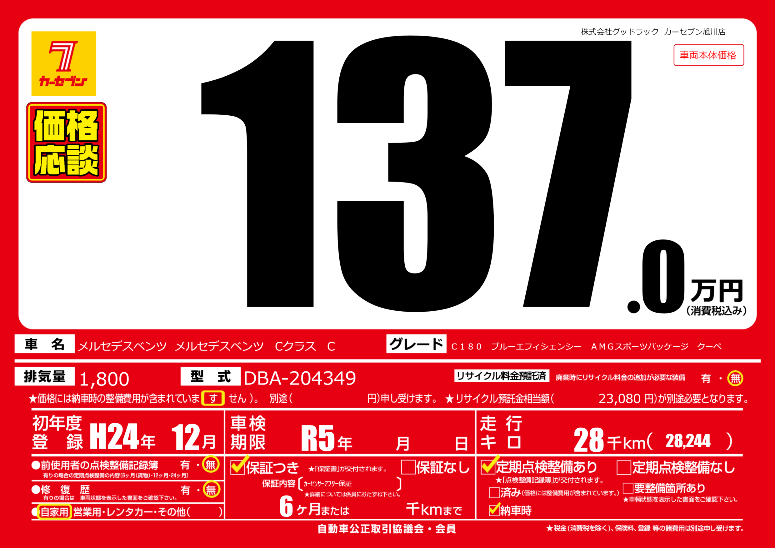 | 車名 | メルセデスベンツ メルセデスベンツ Cクラス C | グレード ミッション 排気量 |