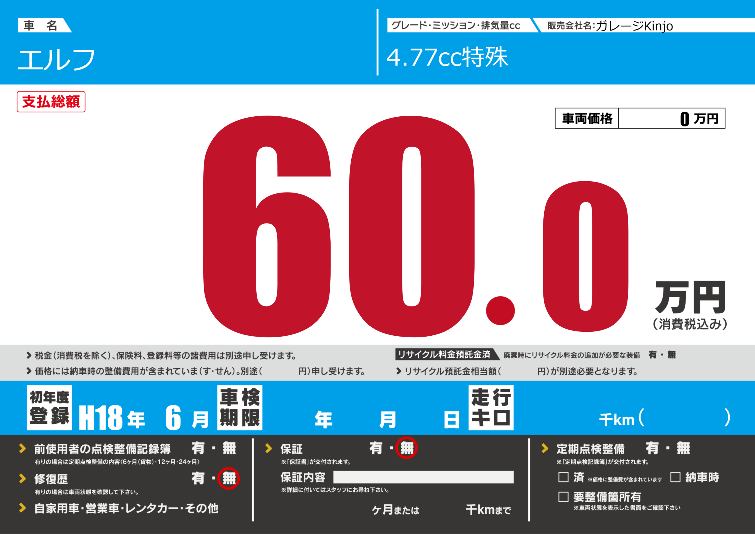 | 車名 | エルフ | グレード ミッション 排気量 |