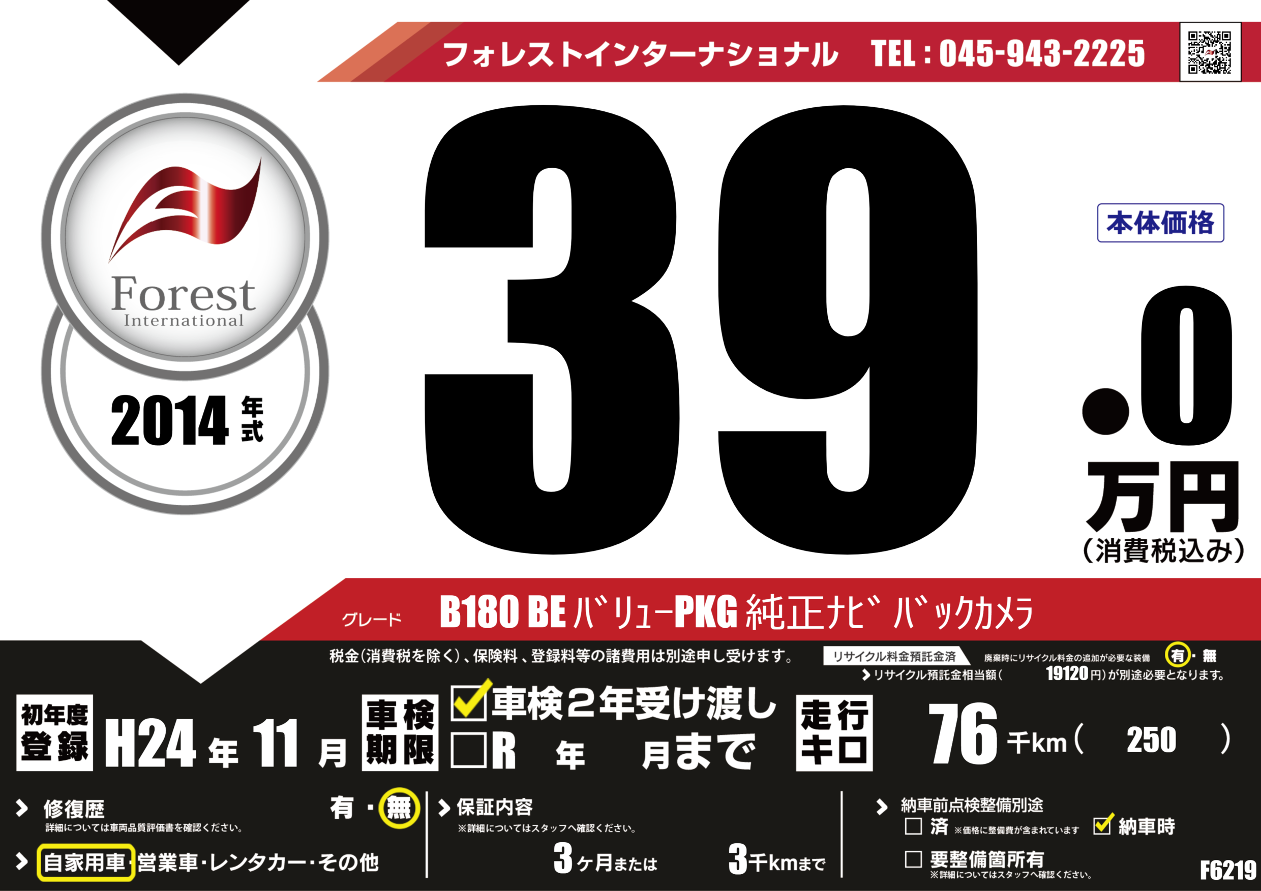 | 走行キロ | 7.6万km | 初年度登録 | H24年11月 |