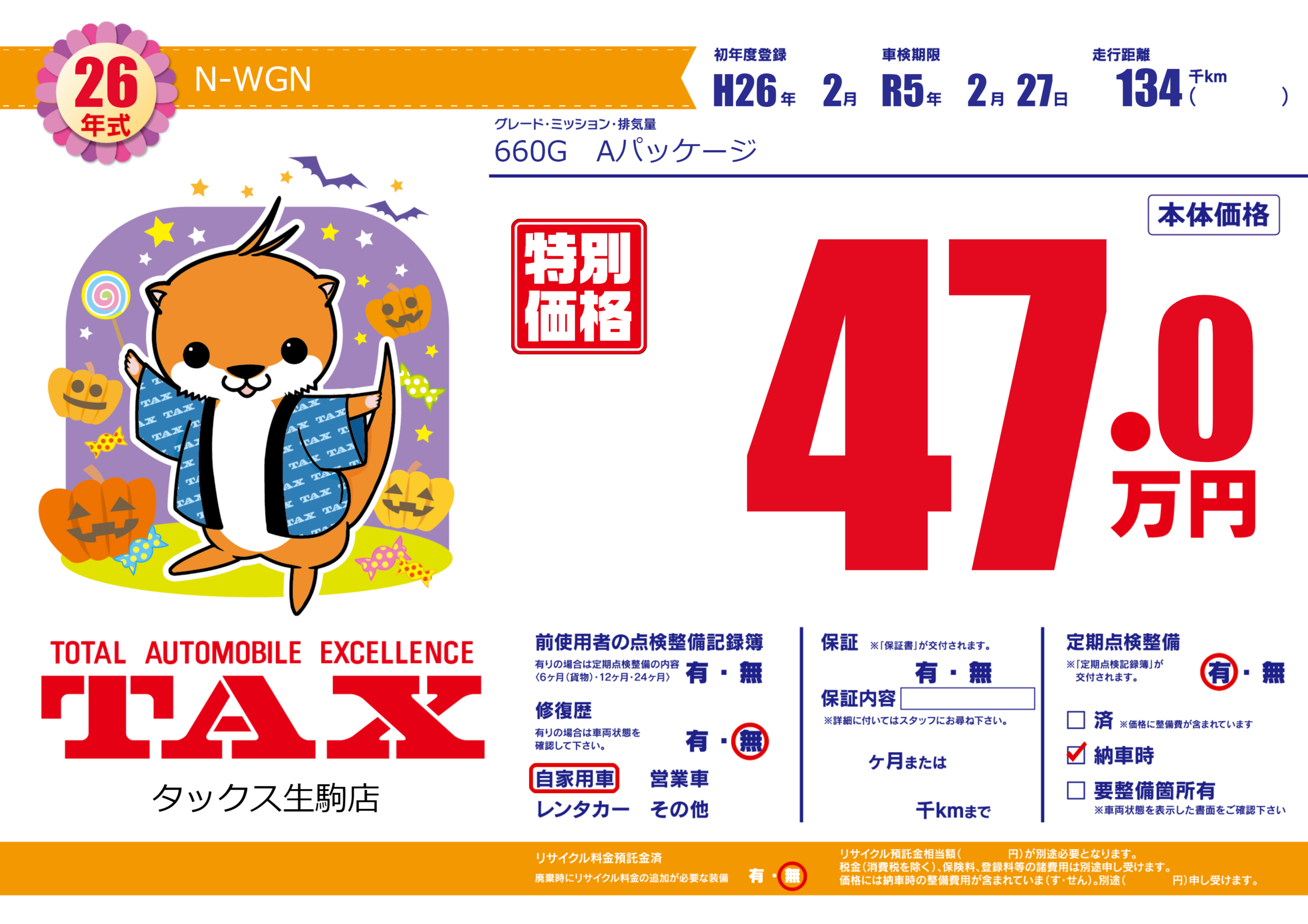 | 車名 | N-WGN | グレード ミッション 排気量 |