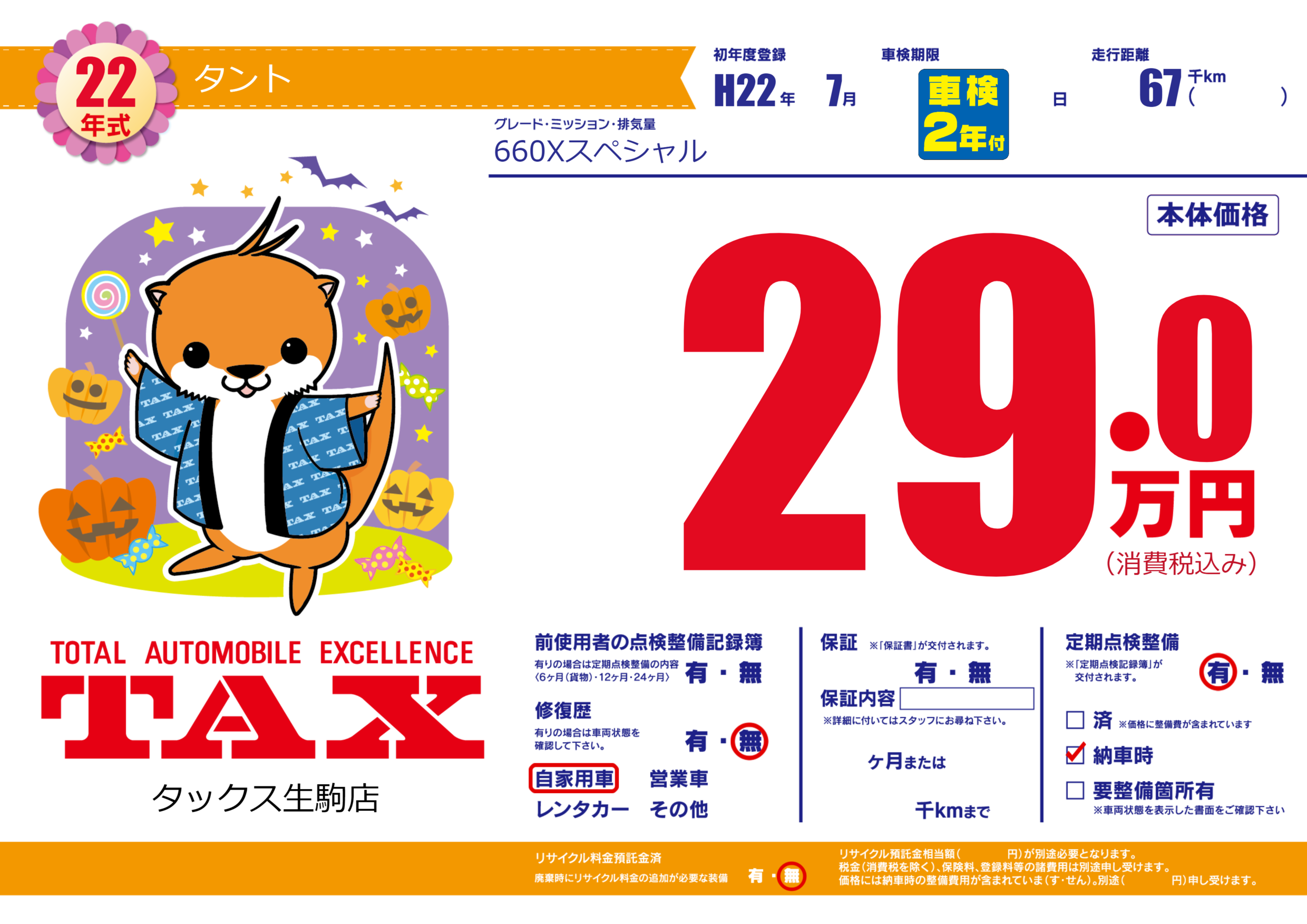 | 走行キロ | 6.7万km | 初年度登録 | H22年7月 |