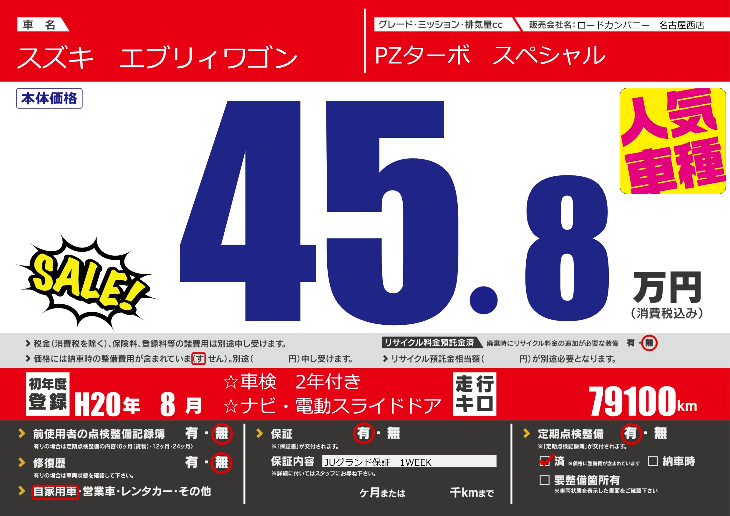 | 定期点検整備 | 定期点検整備あり 定期点検整備済み | ||