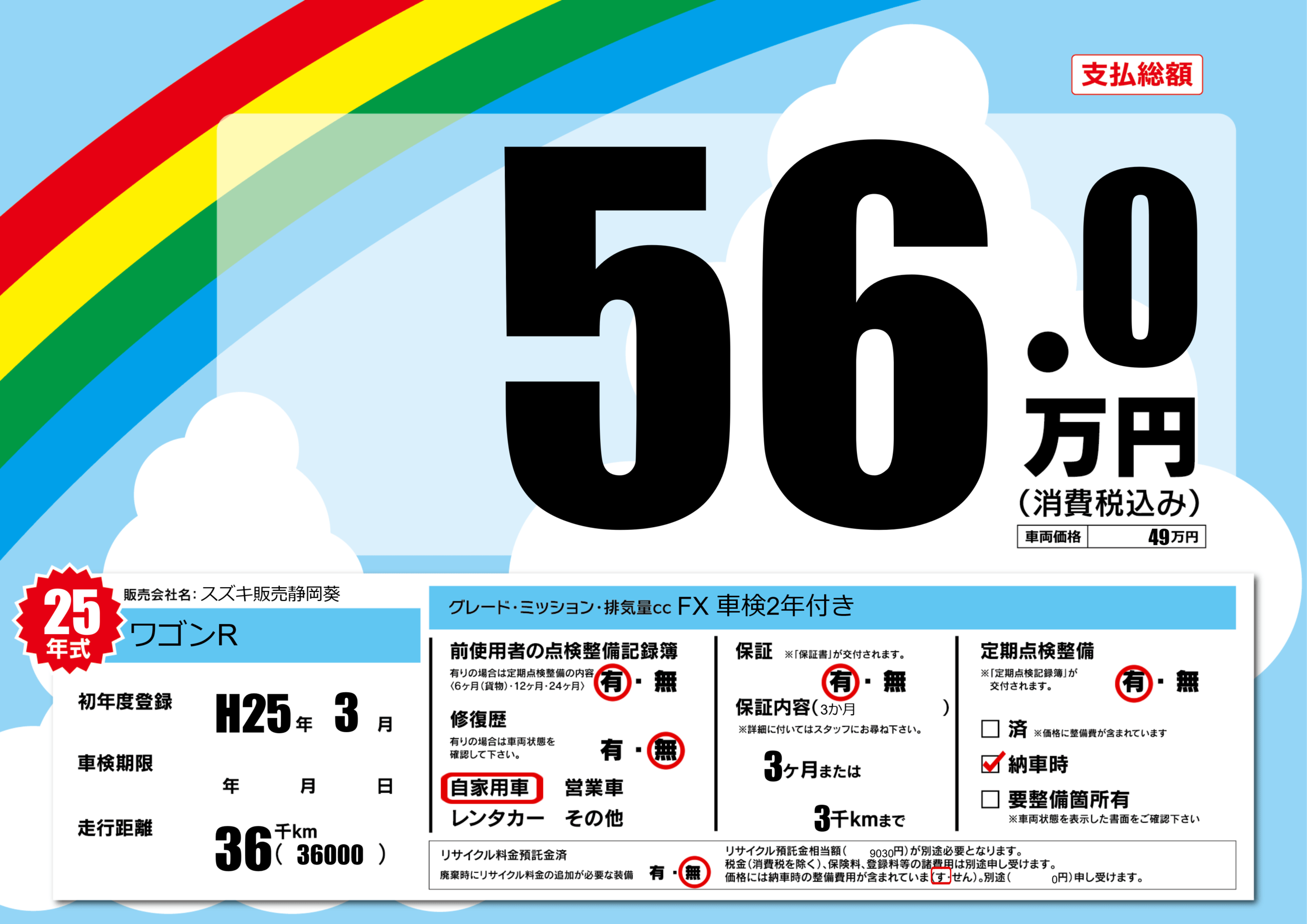 | 車名 | ワゴンR | グレード ミッション 排気量 |