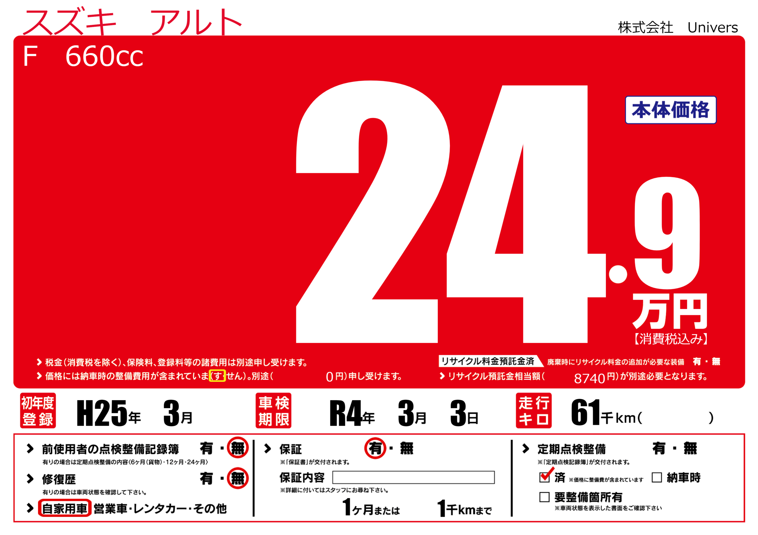 定期点検整備 | 定期点検整備済み |