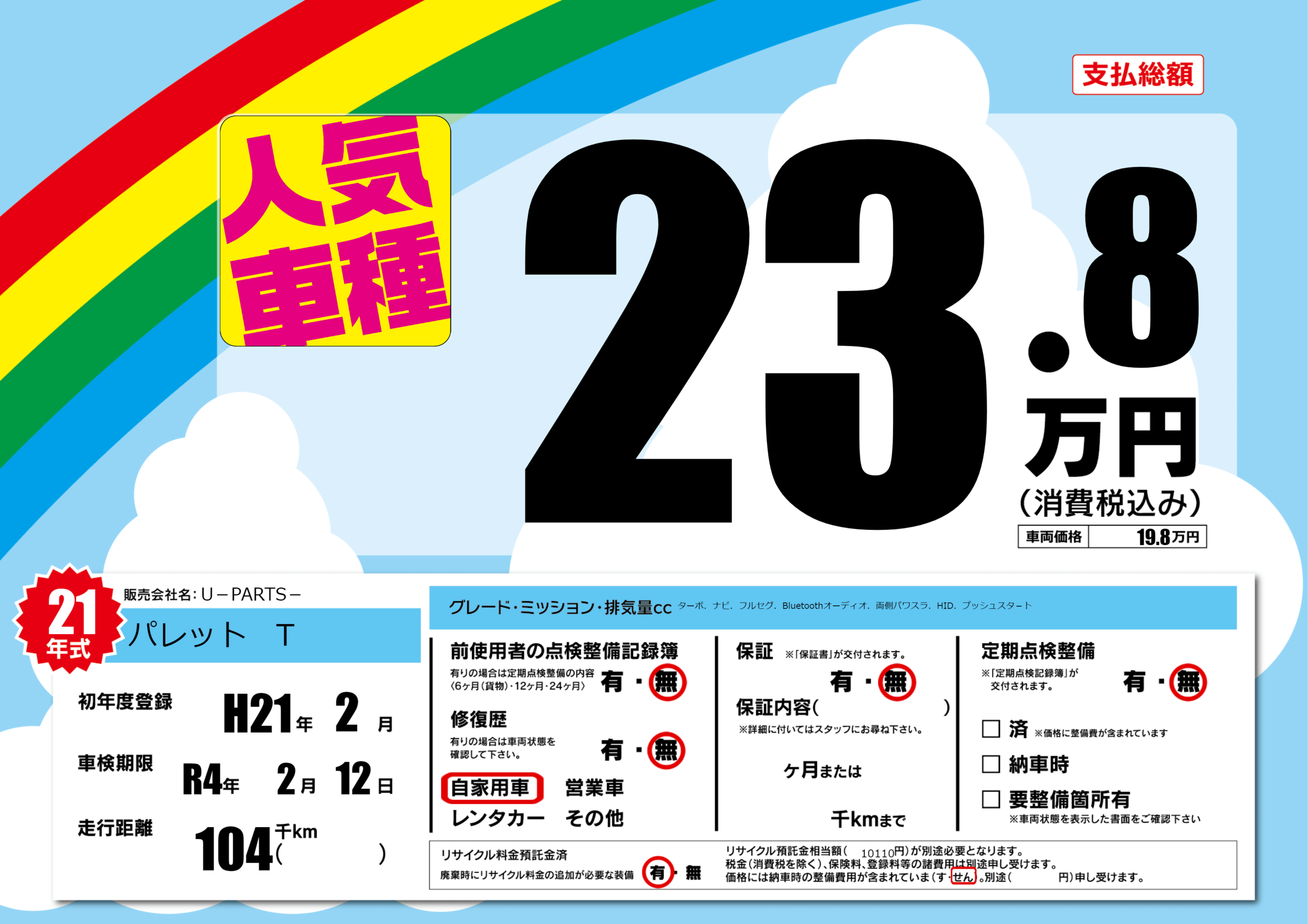 | 車名 | パレット T | グレード ミッション 排気量 |
