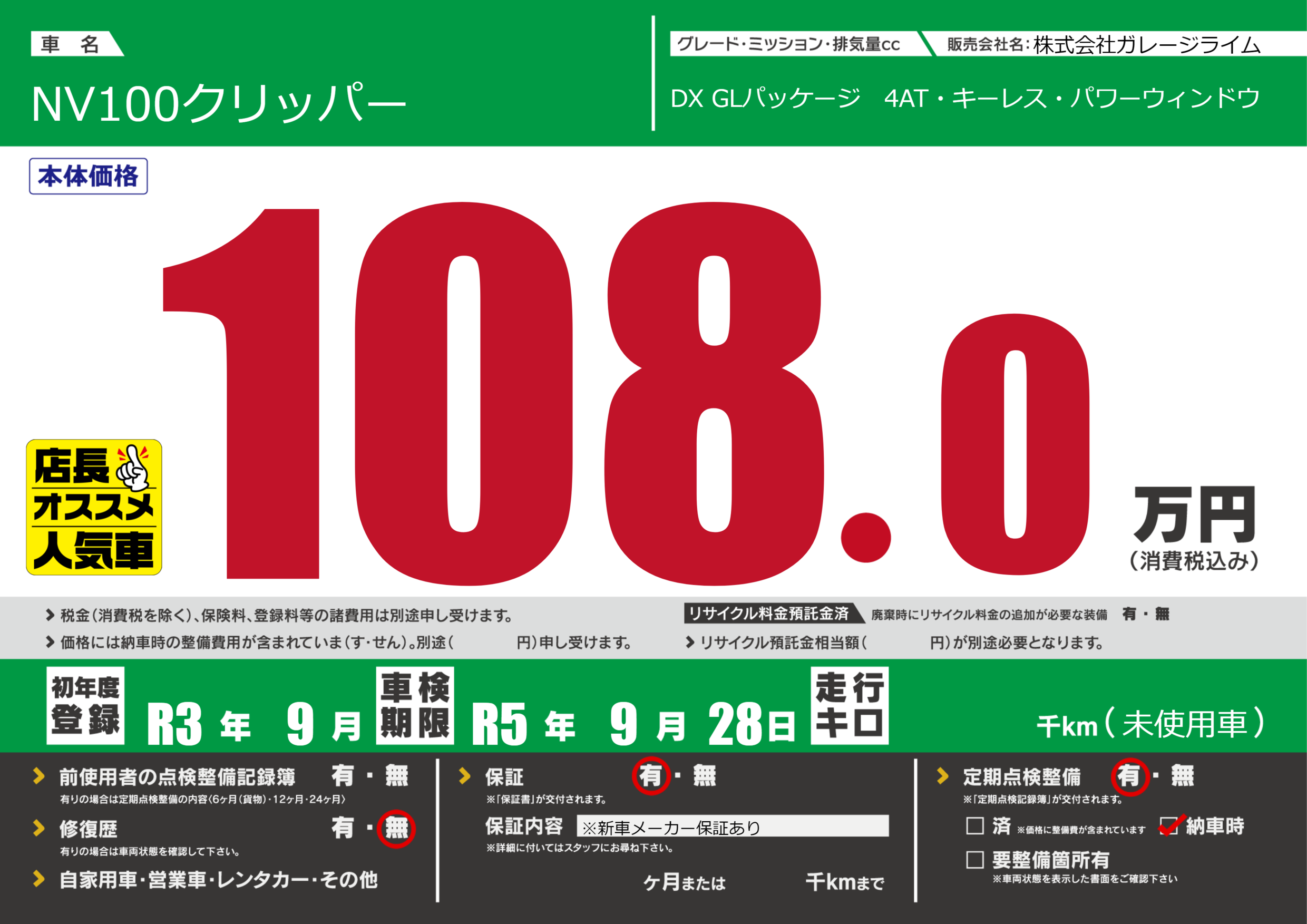 なし | 車検制限 | R5年9月28月 |