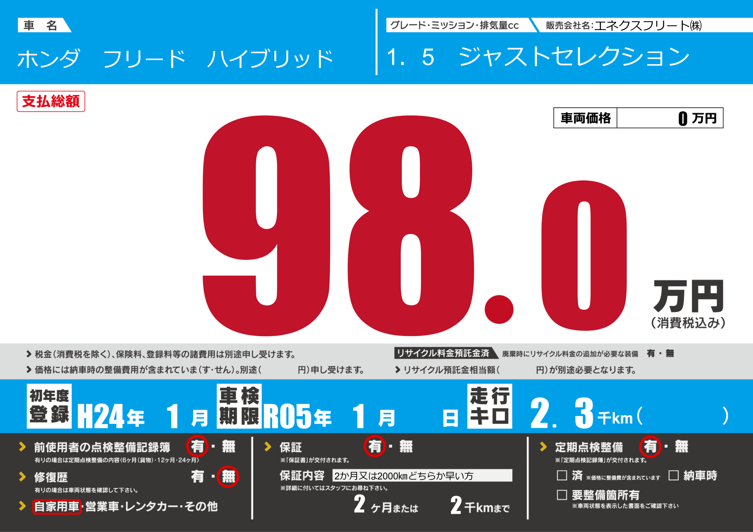 なし | 車検制限 | R05年1月---月 |