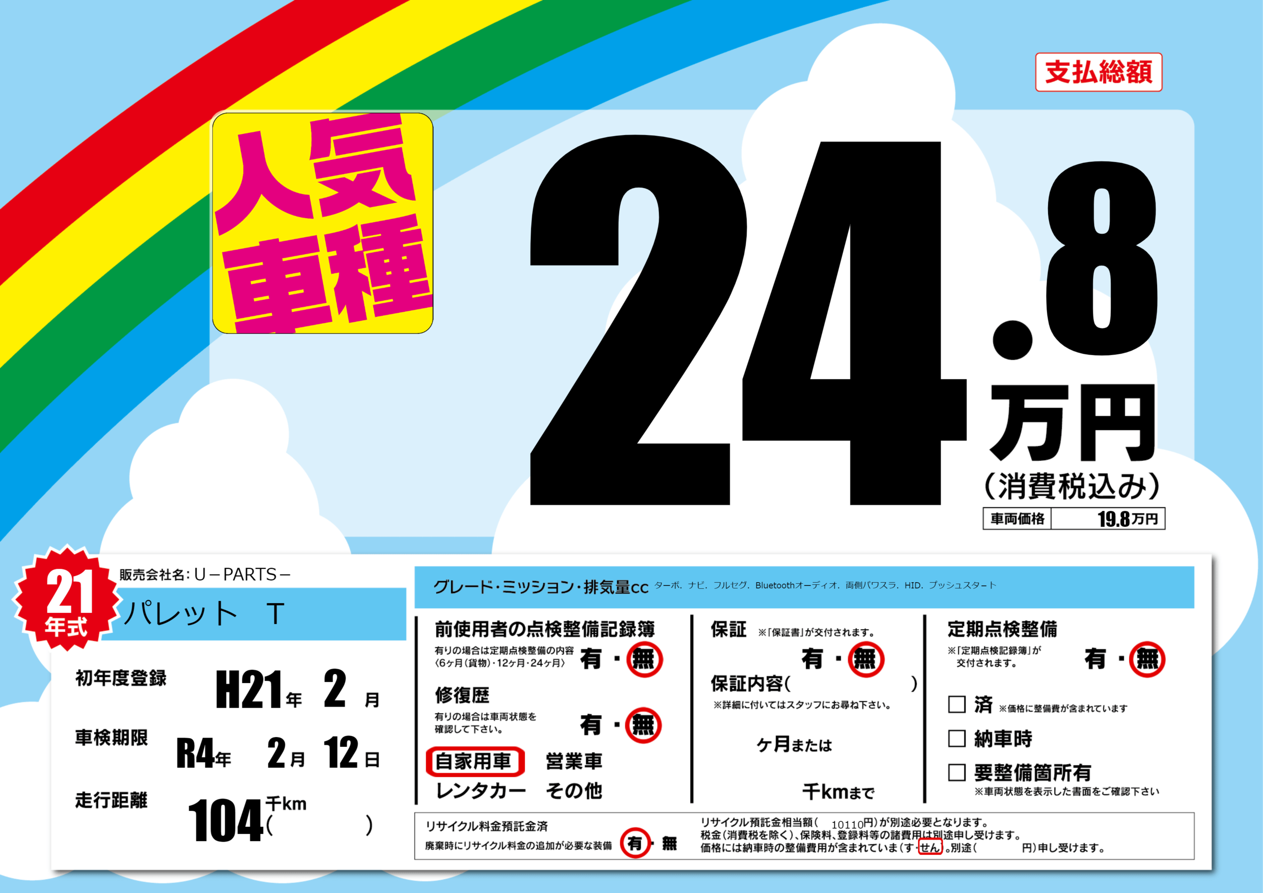 | 車名 | パレット T | グレード ミッション 排気量 |