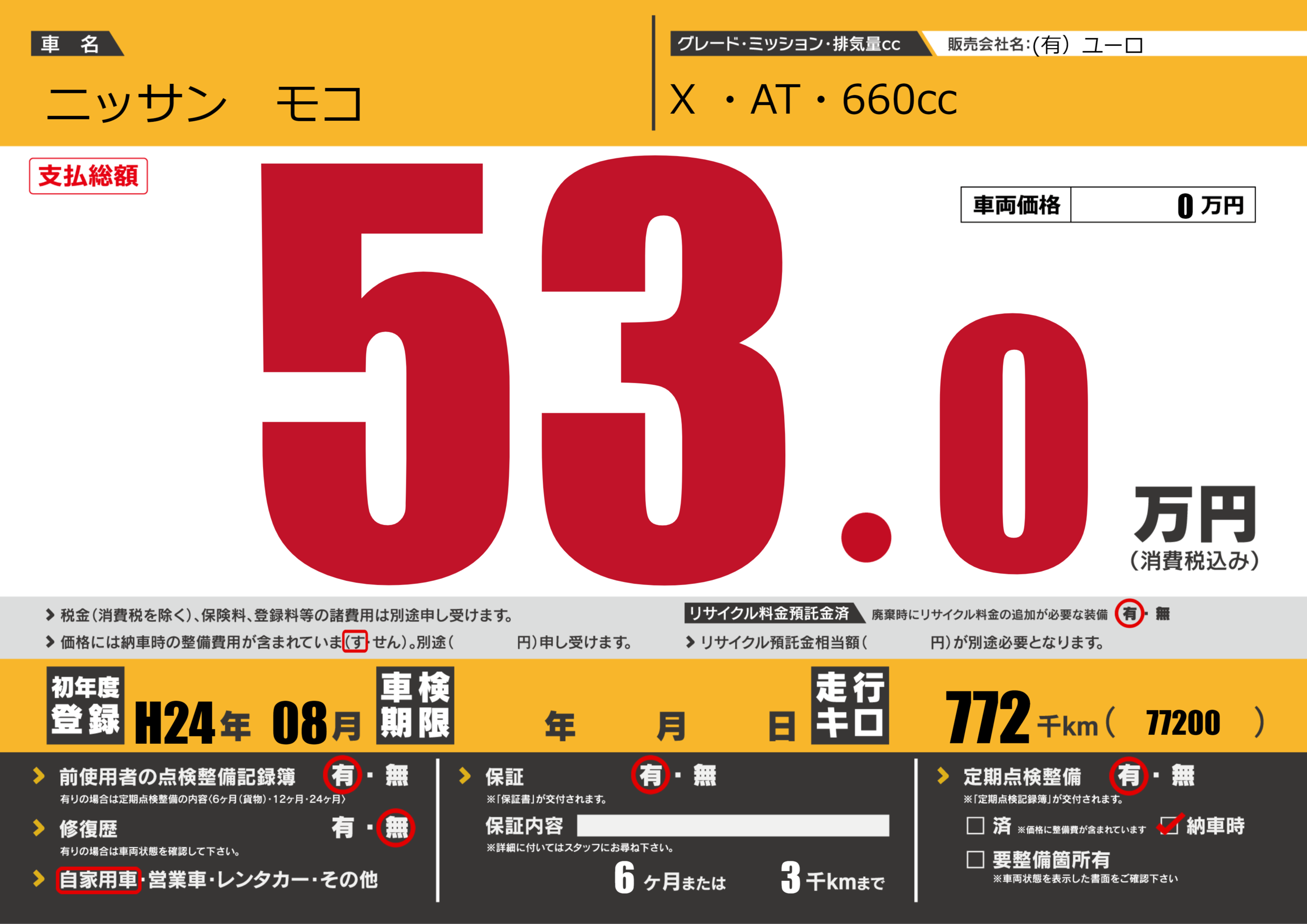 | 車名 | ニッサン モコ | グレード ミッション 排気量 |
