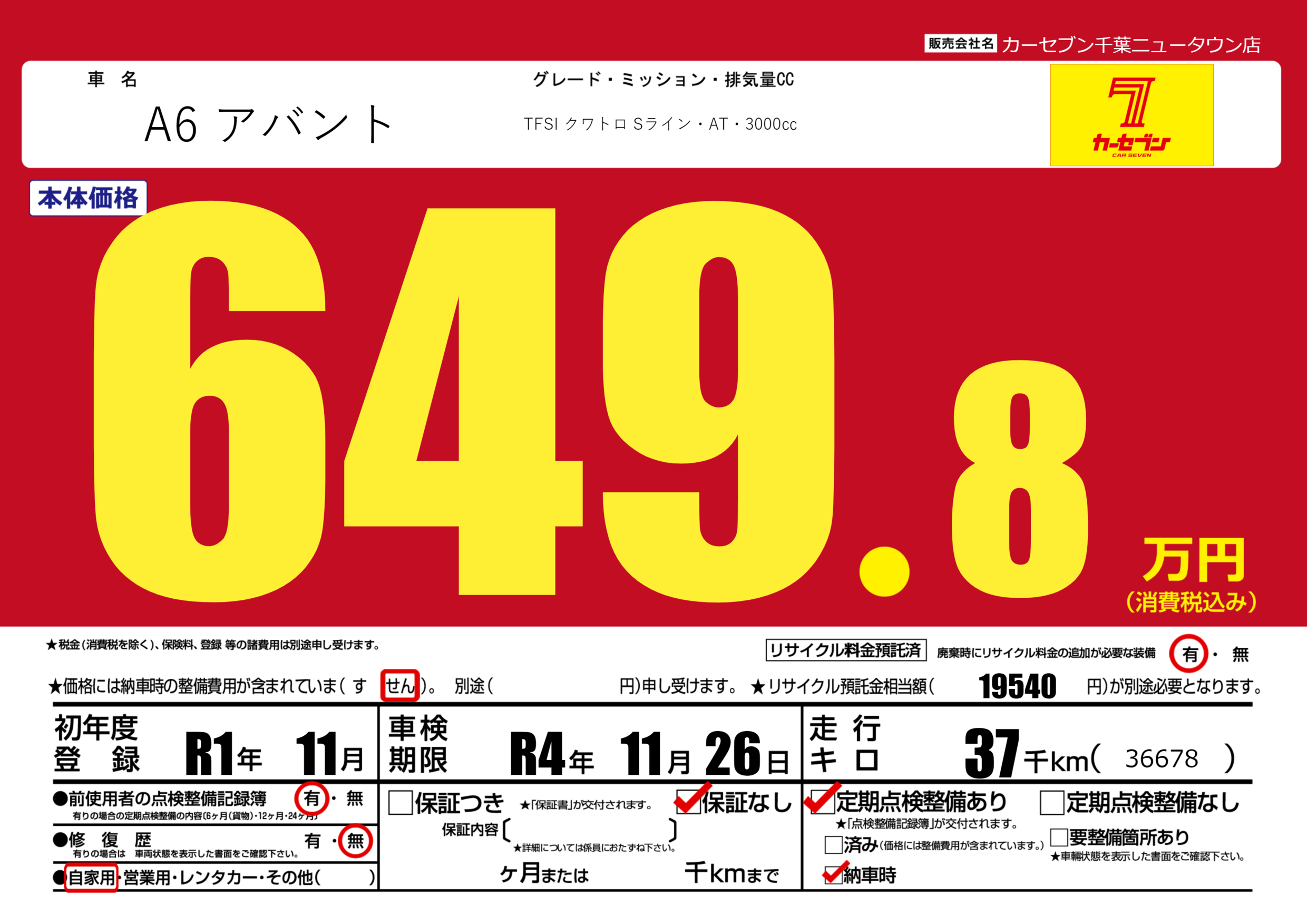 | 車名 | A6 アバント | グレード ミッション 排気量 |