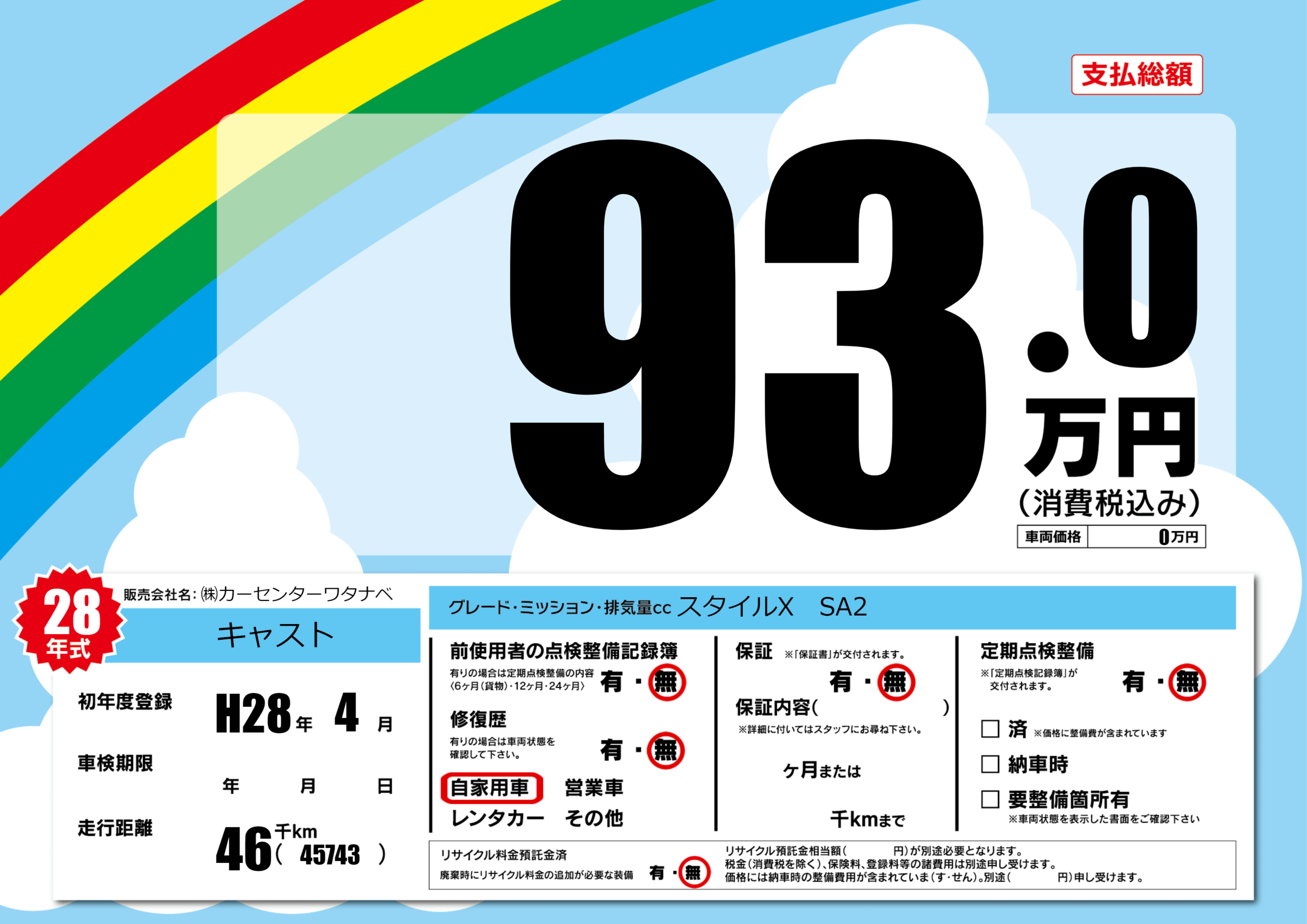 | 走行キロ | 4.6万km | 初年度登録 | H28年4月 |