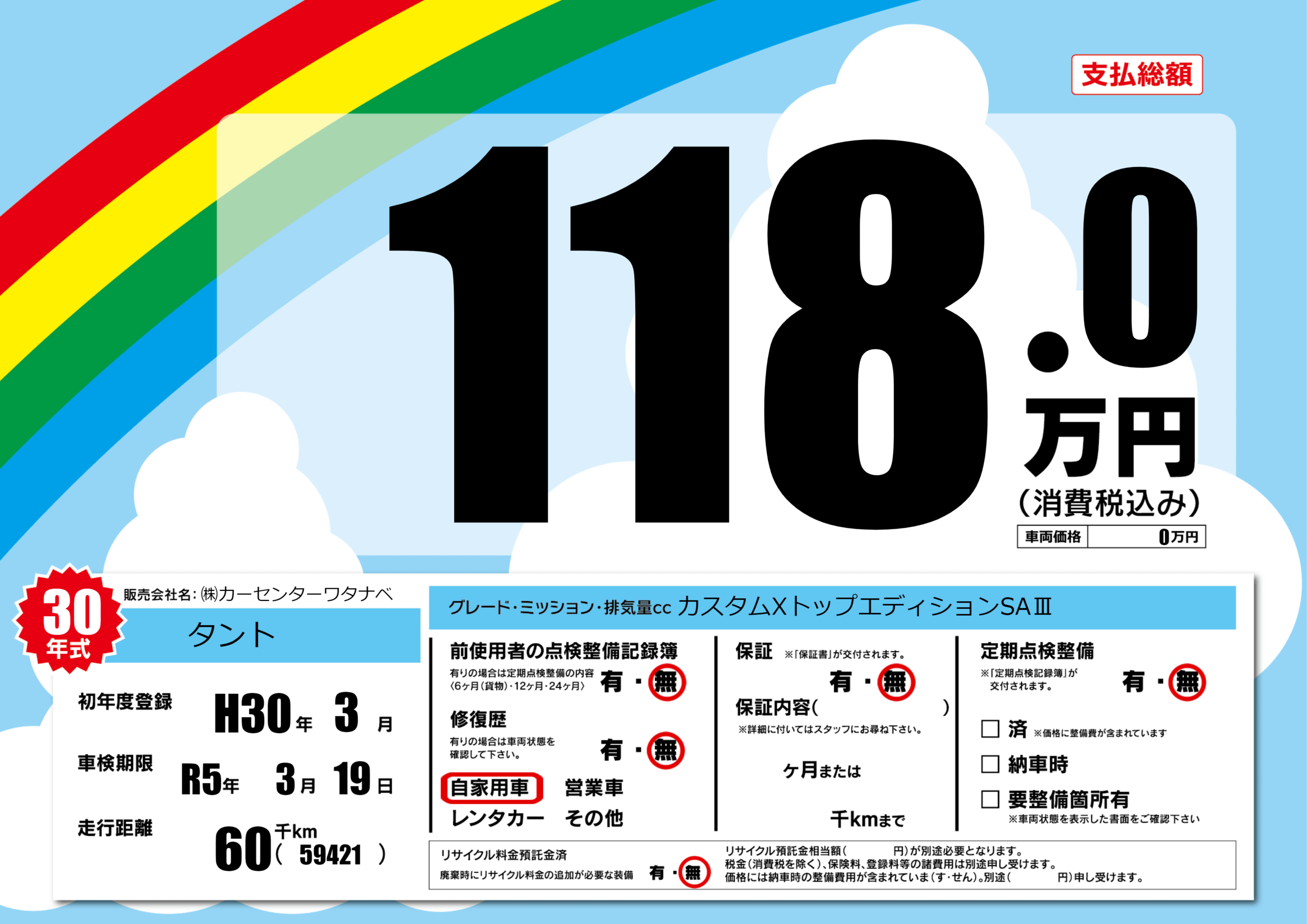| 走行キロ | 6万km | 初年度登録 | H30年3月 |