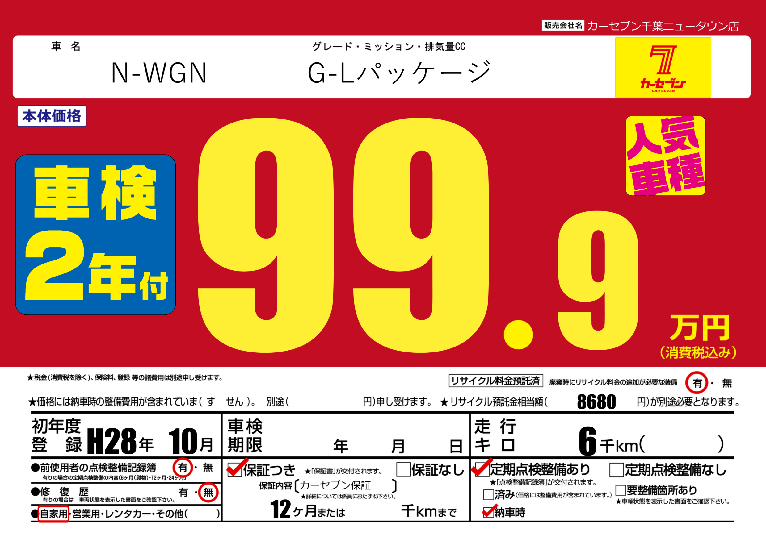 | 車名 | N-WGN | グレード ミッション 排気量 |