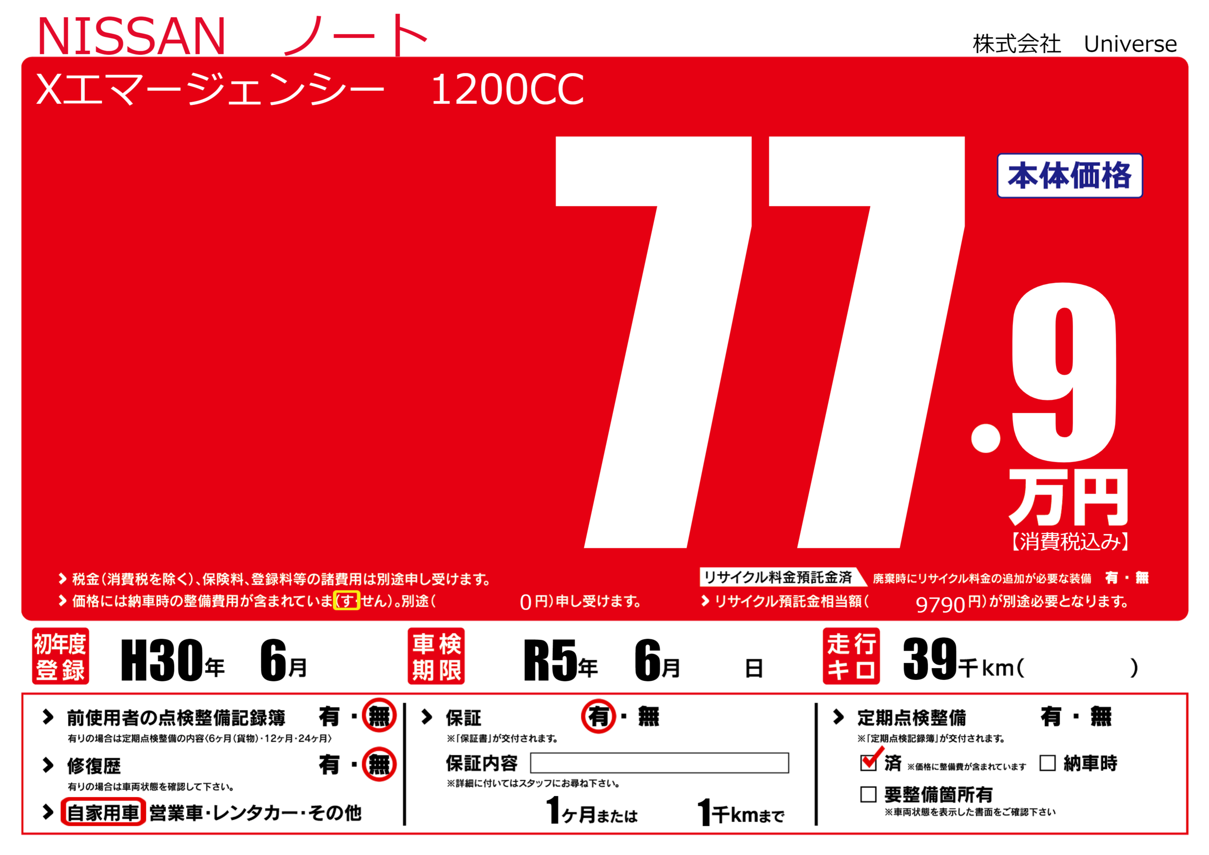 定期点検整備 | 定期点検整備済み |