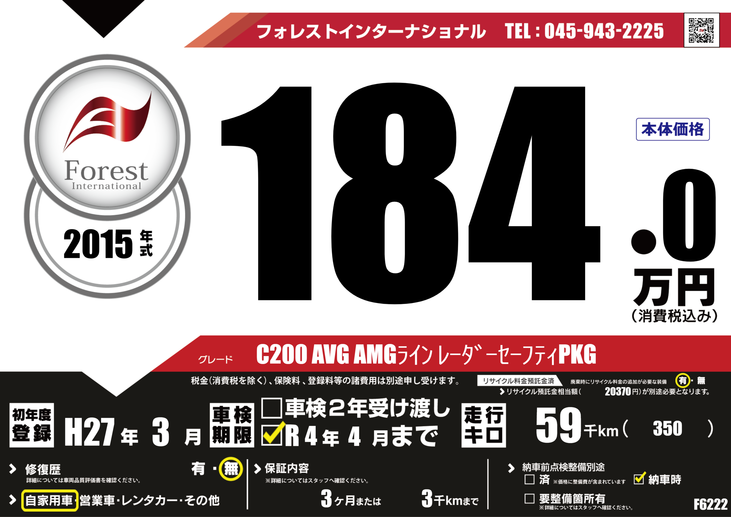 | 走行キロ | 5.9万km | 初年度登録 | H27年3月 |
