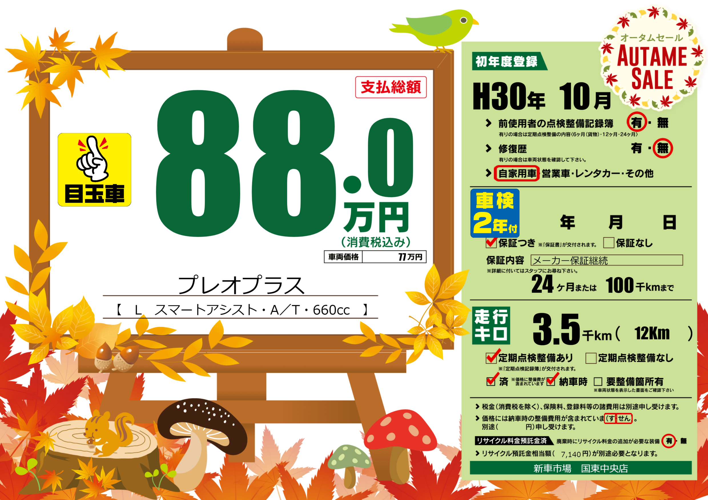 | 車名 | プレオプラス | グレード ミッション 排気量 |
