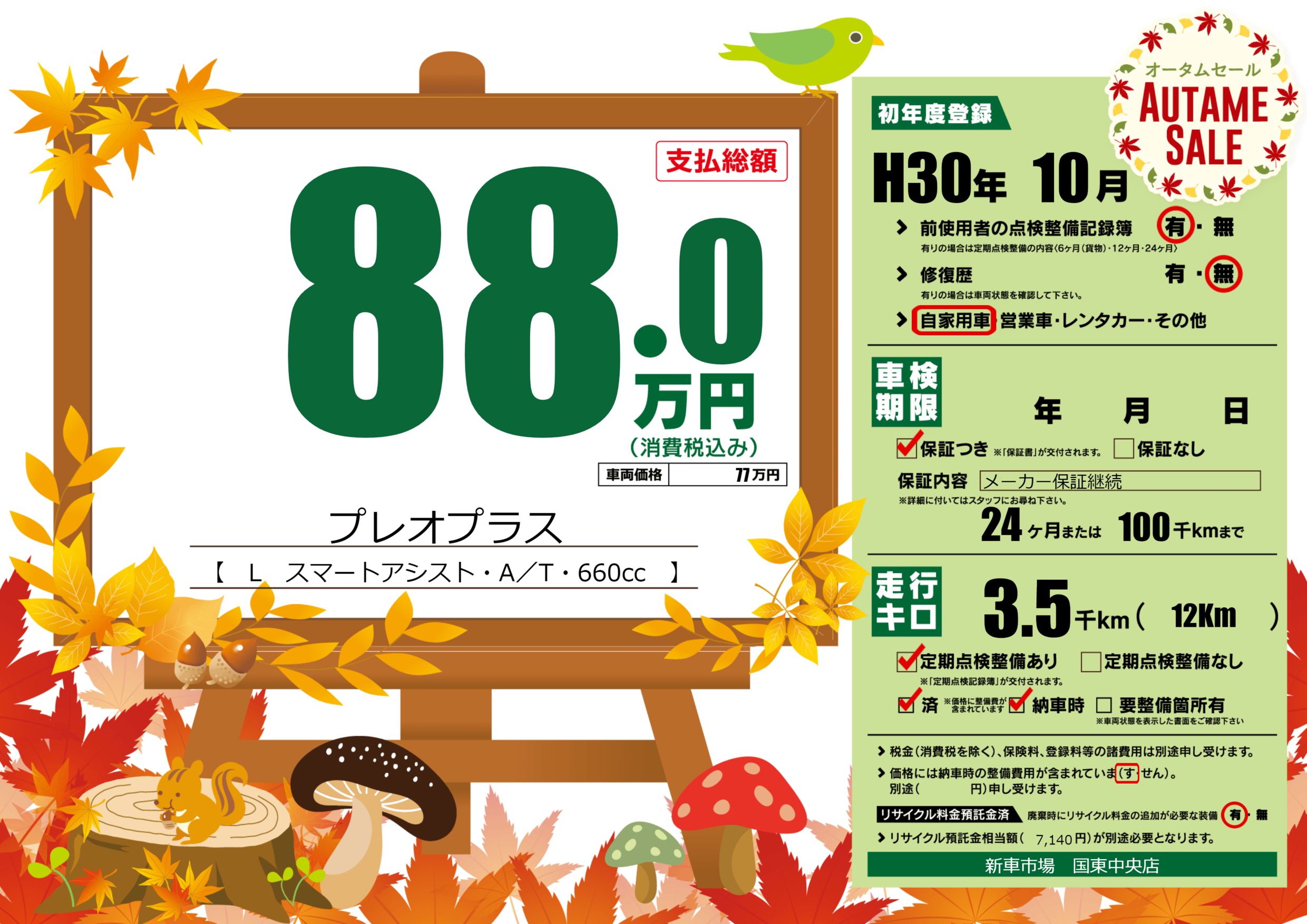 | 車名 | プレオプラス | グレード ミッション 排気量 |