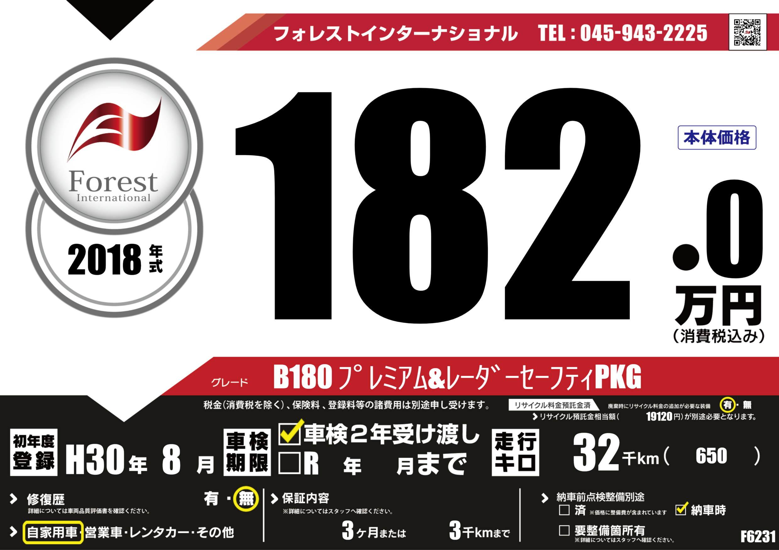 | 走行キロ | 3.2万km | 初年度登録 | H30年8月 |