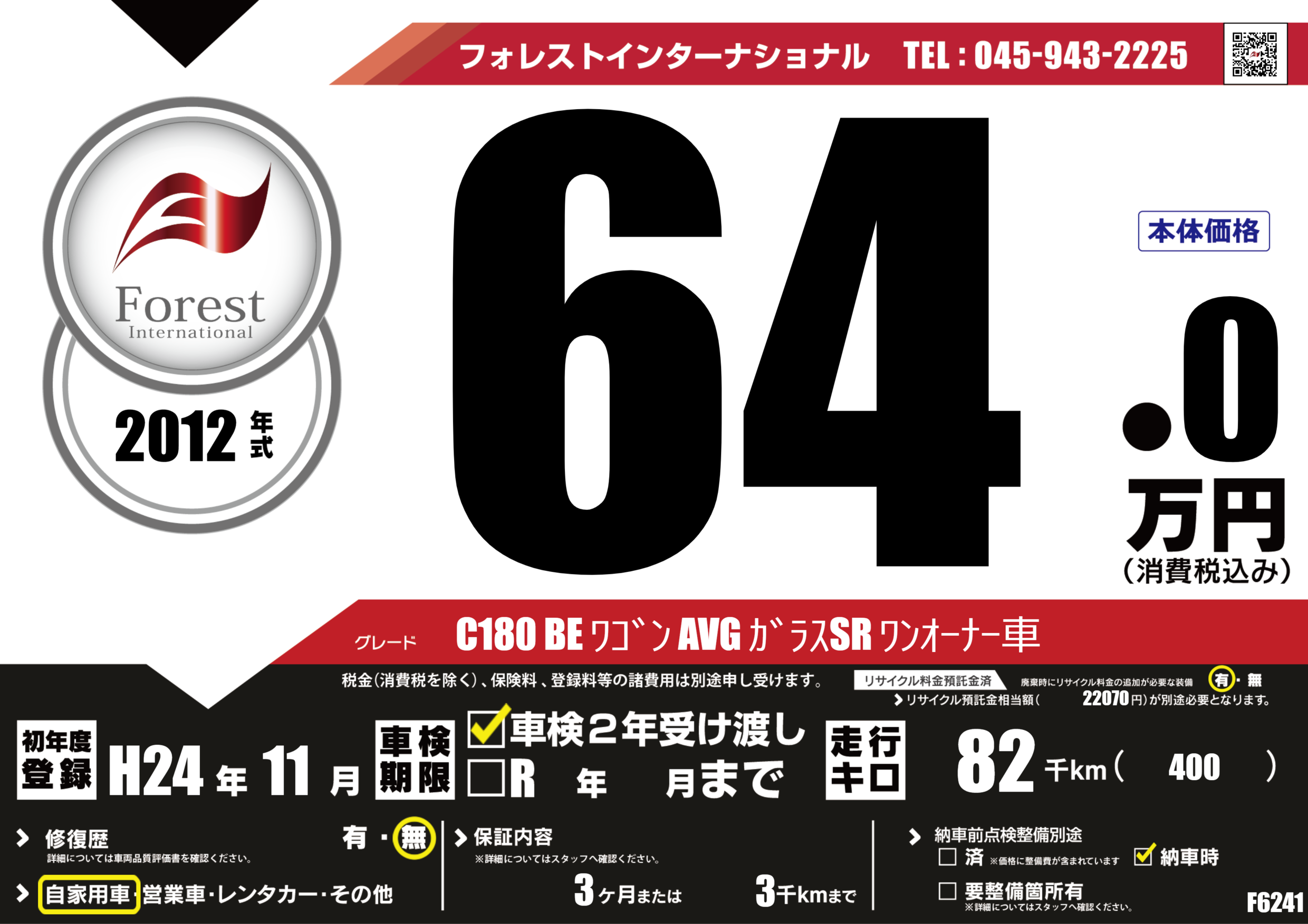 C180 BE ワゴン AVG ガラスSR ワンオーナー車 |