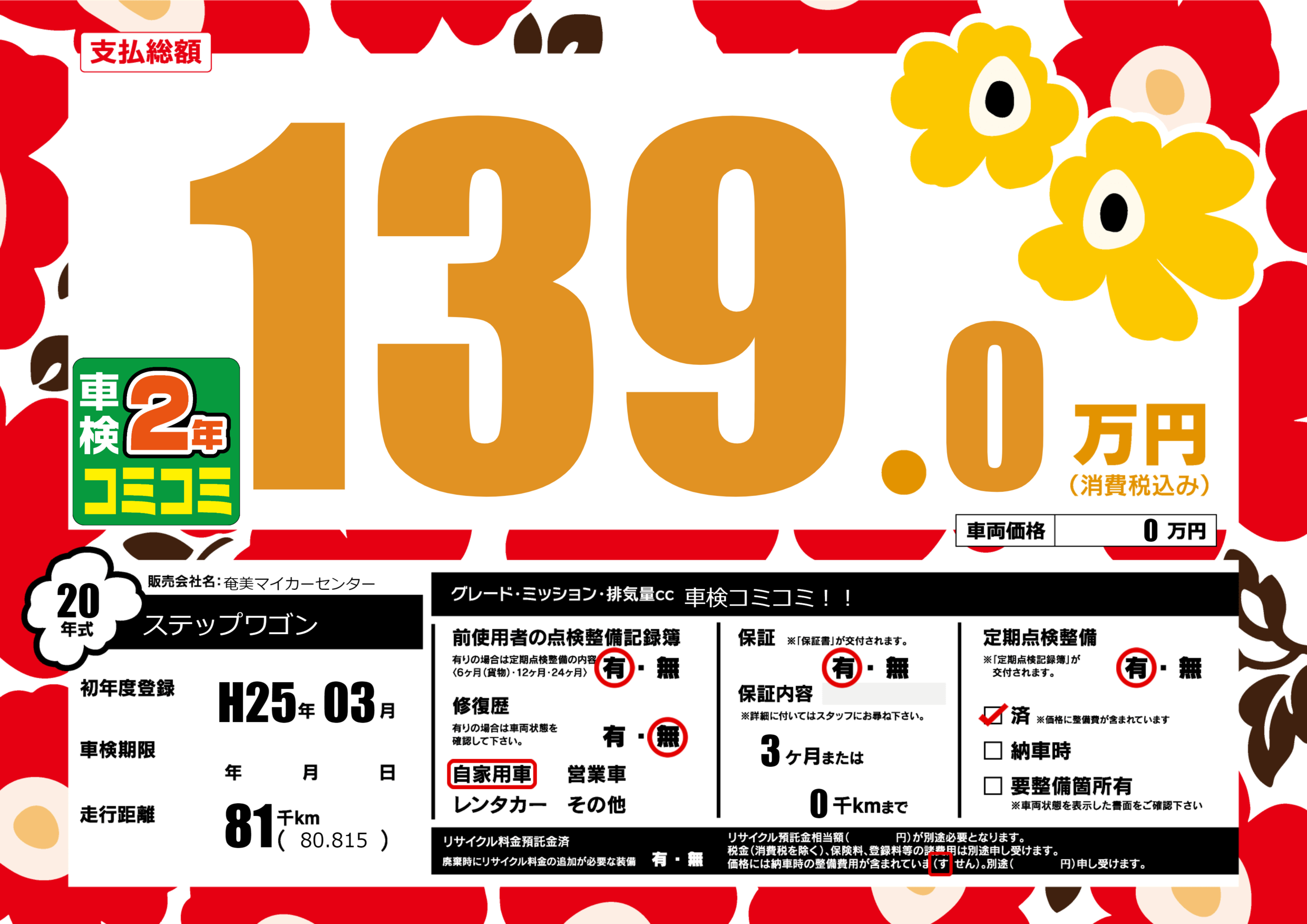 | 定期点検整備 | 定期点検整備あり 定期点検整備済み | ||