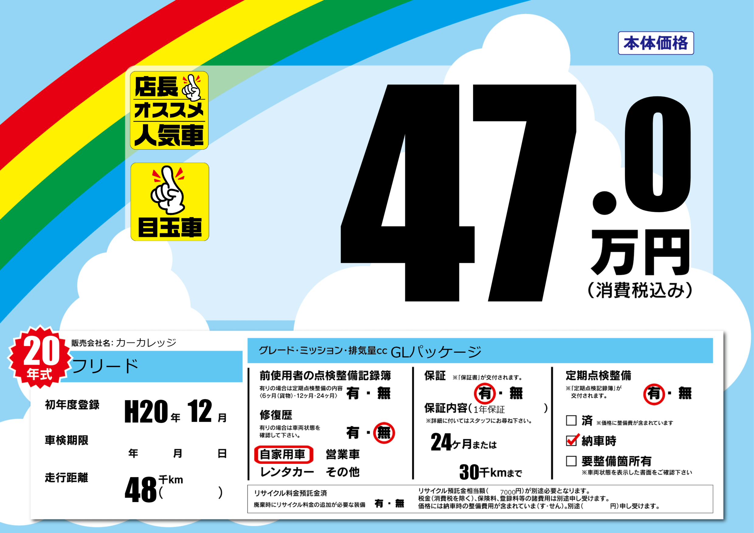 | 定期点検整備 | 定期点検整備あり 納車時あり | ||