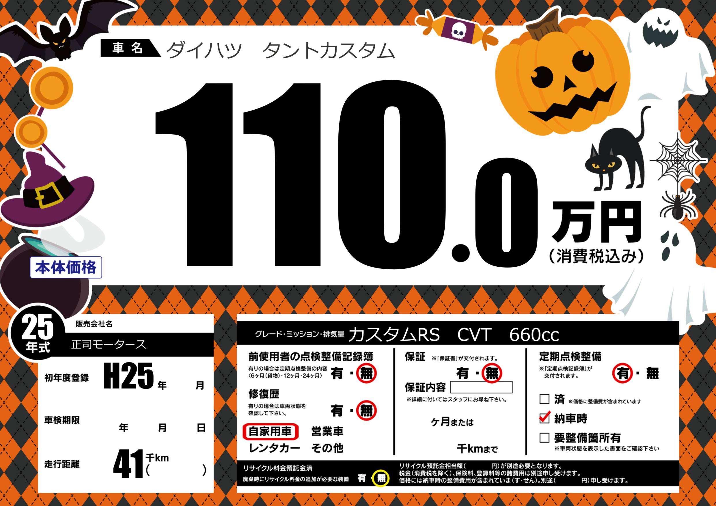 | 定期点検整備 | 定期点検整備あり 納車時あり | ||