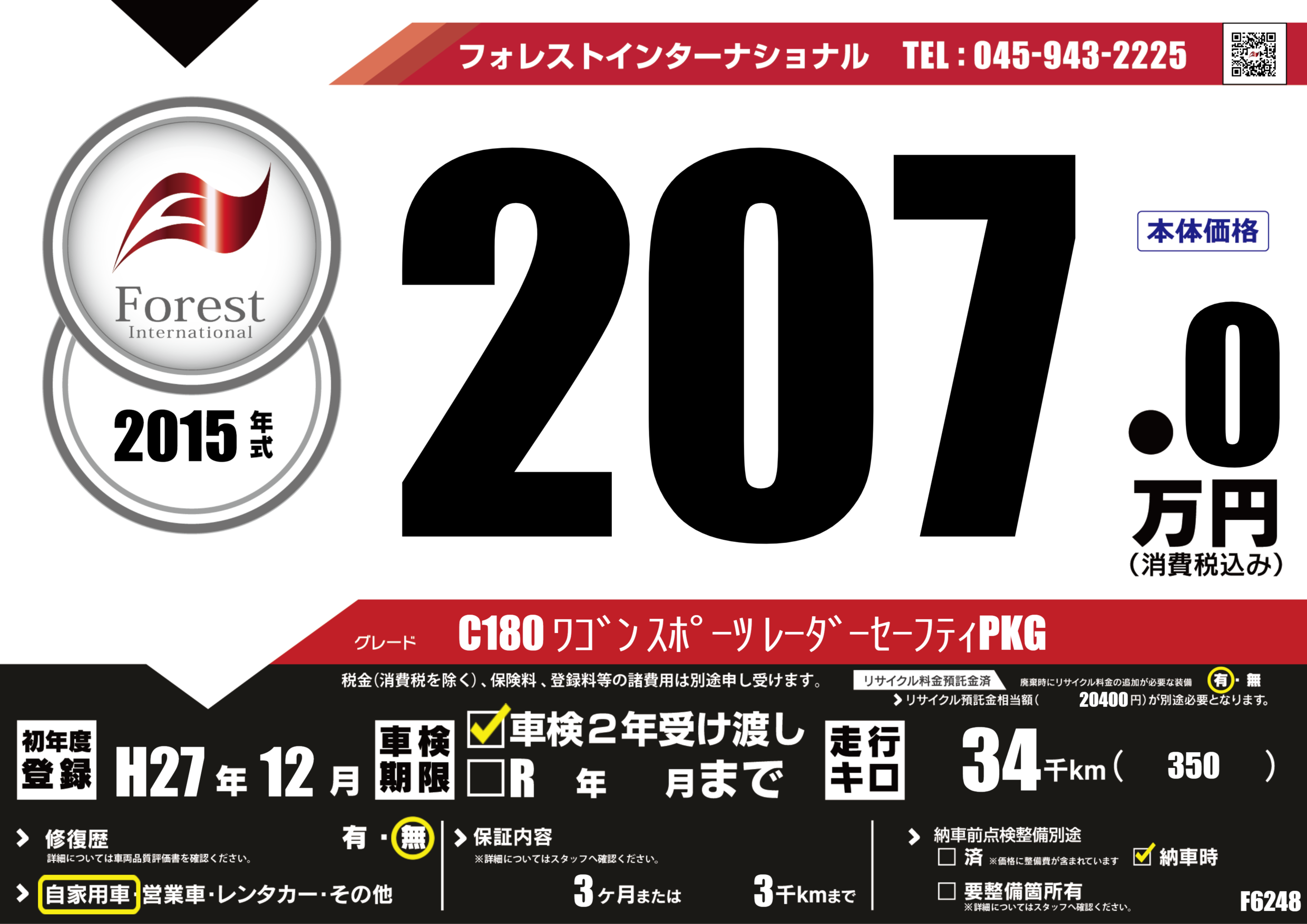 | 走行キロ | 3.4万km | 初年度登録 | H27年12月 |