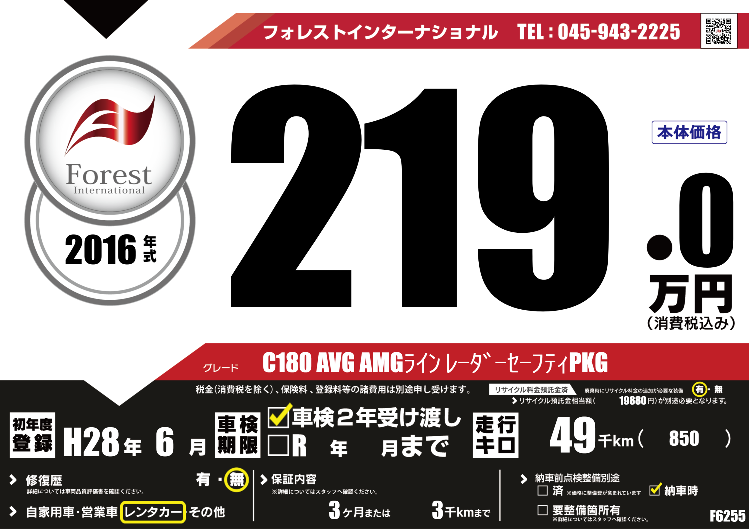 | 走行キロ | 4.9万km | 初年度登録 | H28年6月 |