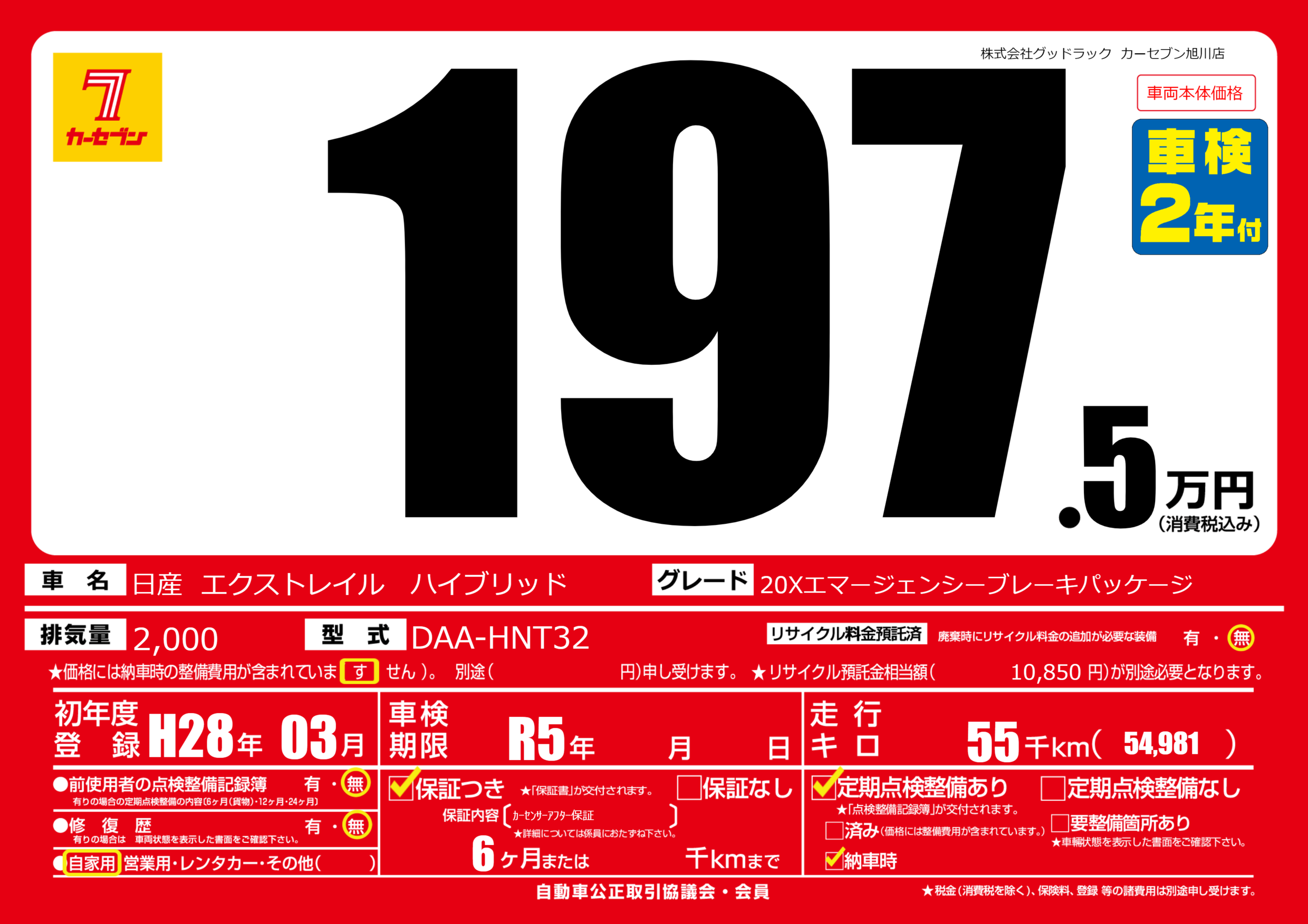 | 車名 | 日産 エクストレイル ハイブリッド | グレード ミッション 排気量 |