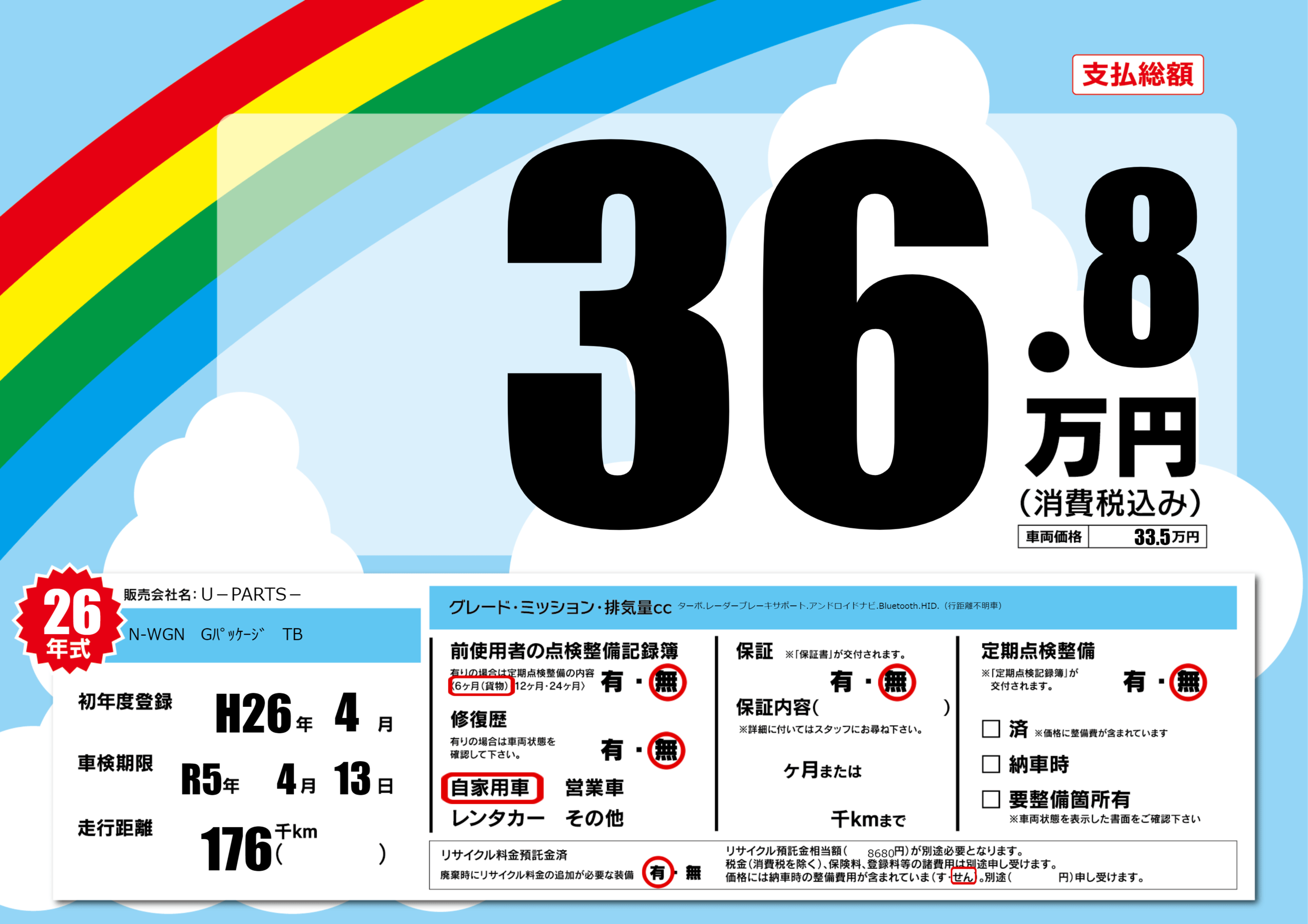 なし | 車検制限 | R5年4月13月 |