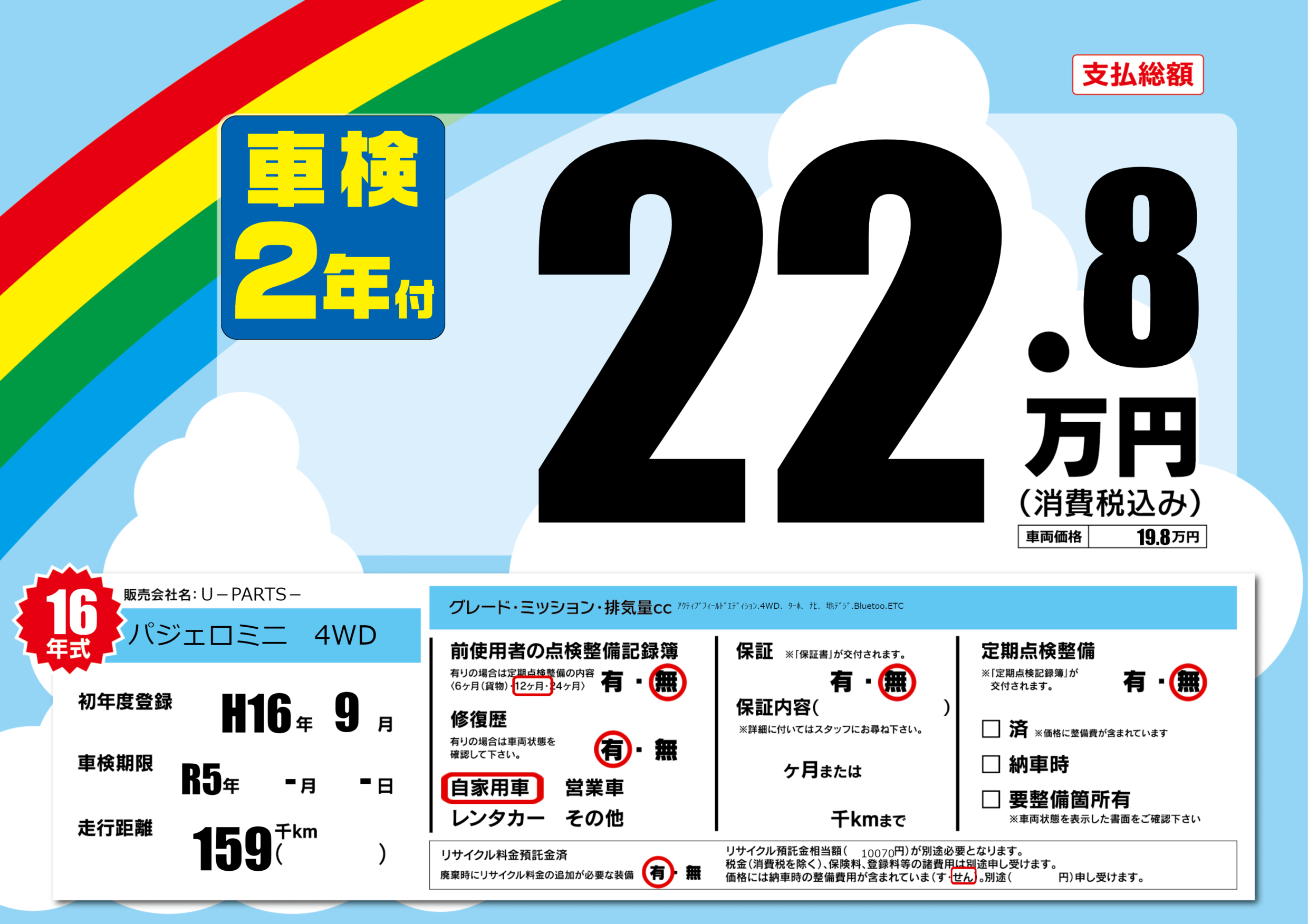 | 車名 | パジェロミニ 4WD | グレード ミッション 排気量 |
