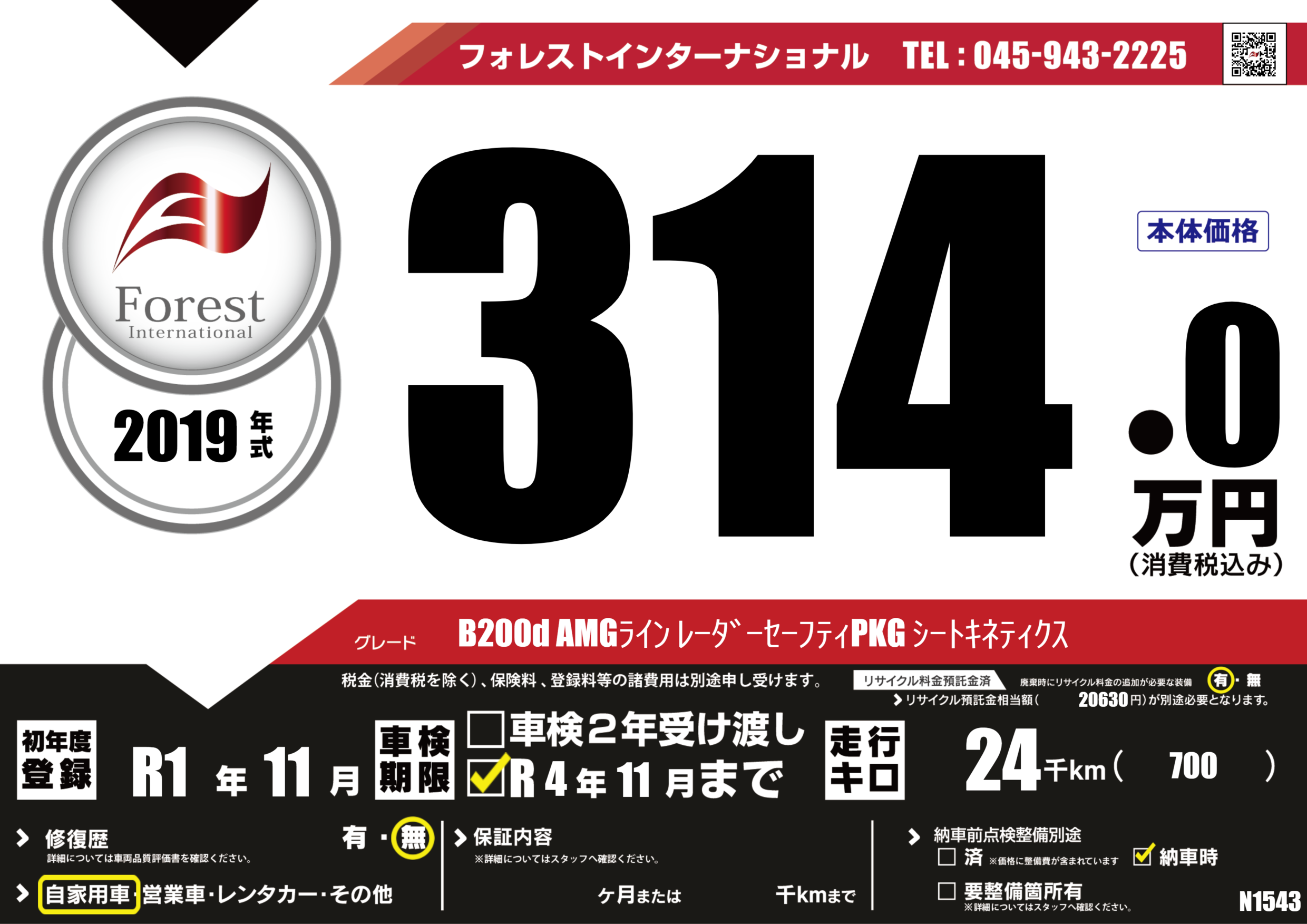 | 走行キロ | 2.4万km | 初年度登録 | R1年11月 |