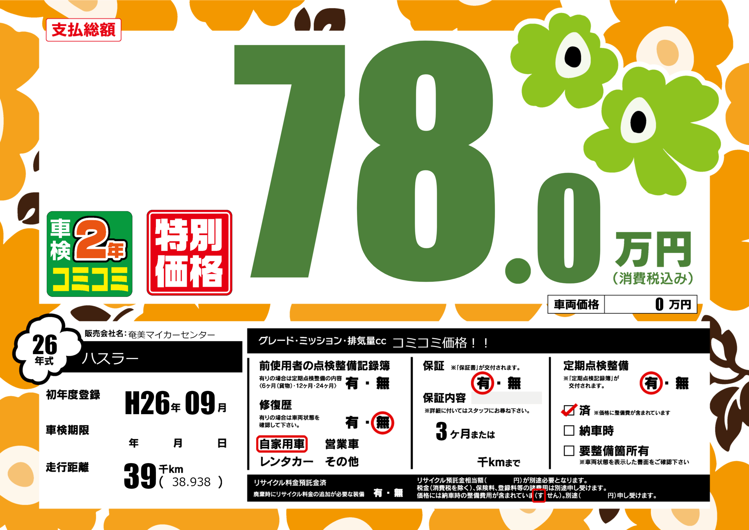 | 定期点検整備 | 定期点検整備あり 定期点検整備済み | ||