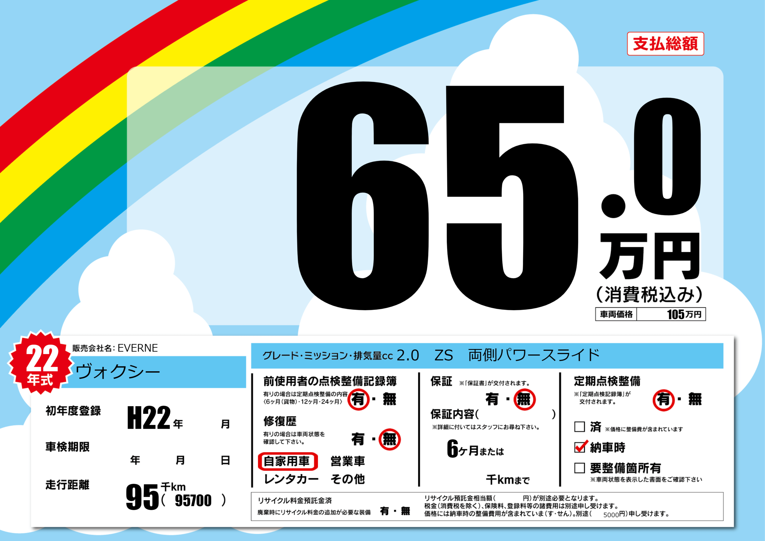 | 走行キロ | 9.5万km | 初年度登録 | H22年---月 |