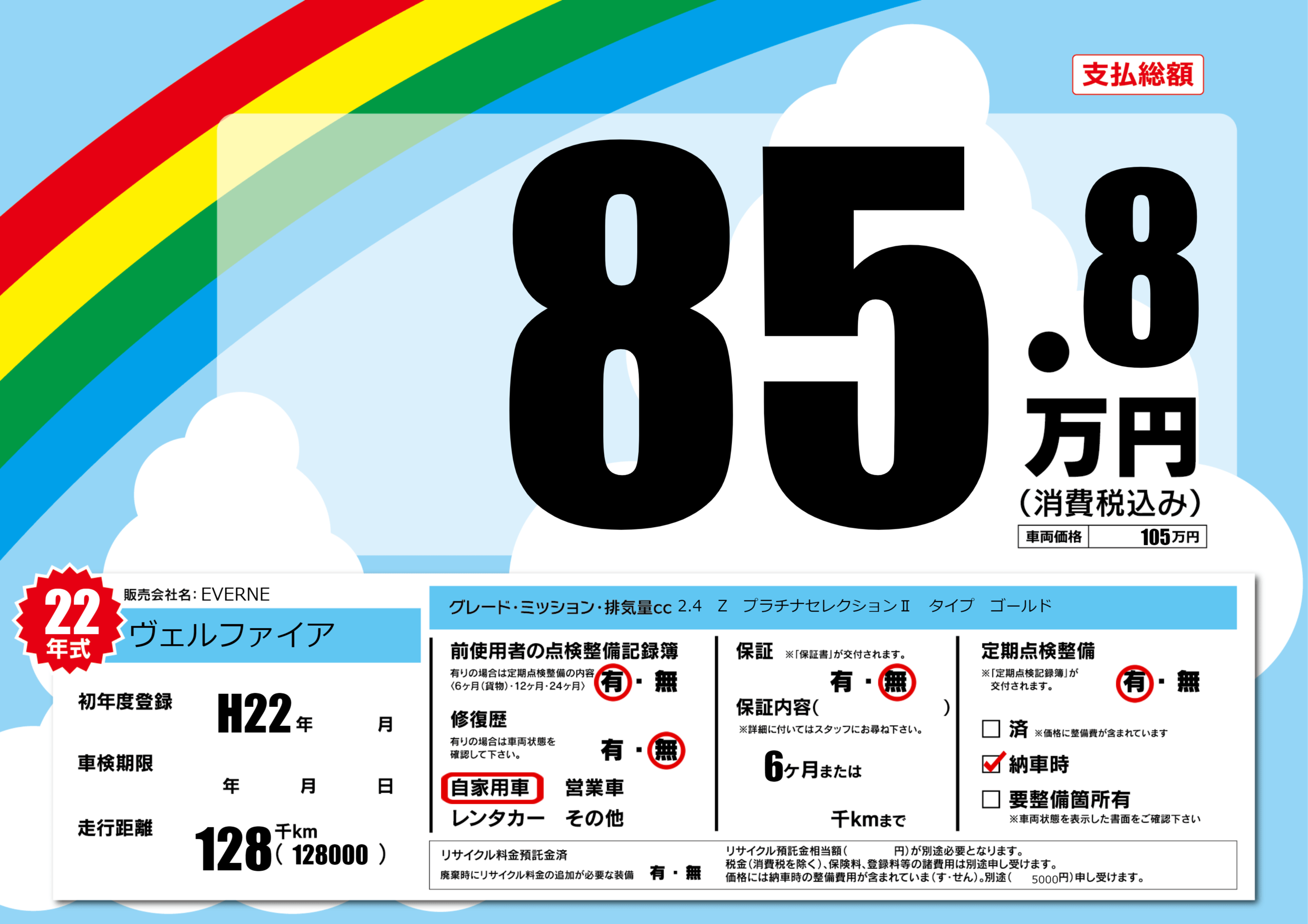 | 走行キロ | 12.8万km | 初年度登録 | H22年---月 |