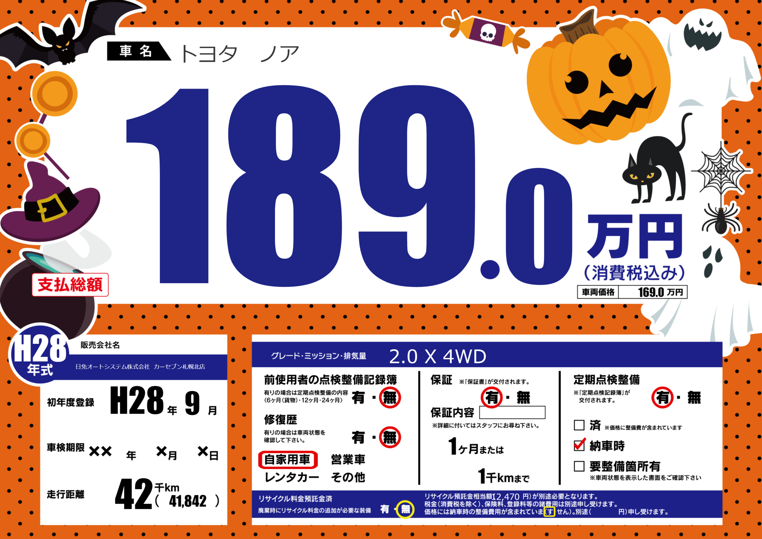 | 走行キロ | 4.2万km | 初年度登録 | H28年9月 |