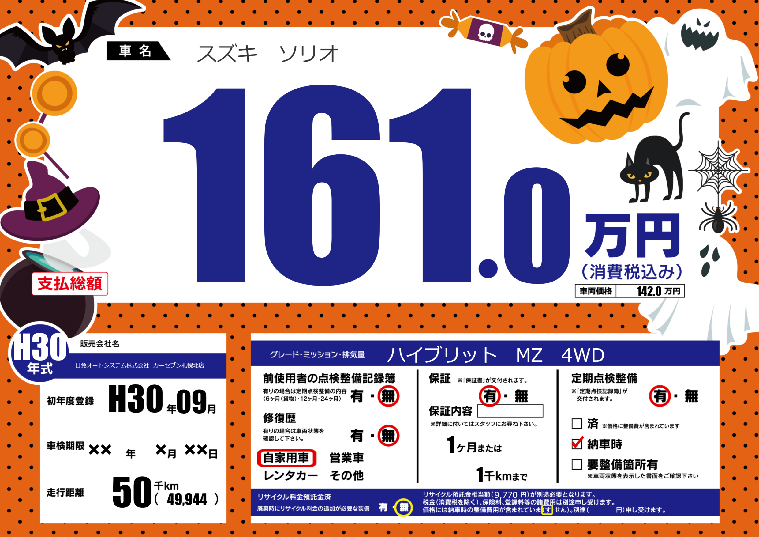 | 走行キロ | 5万km | 初年度登録 | H30年09月 |