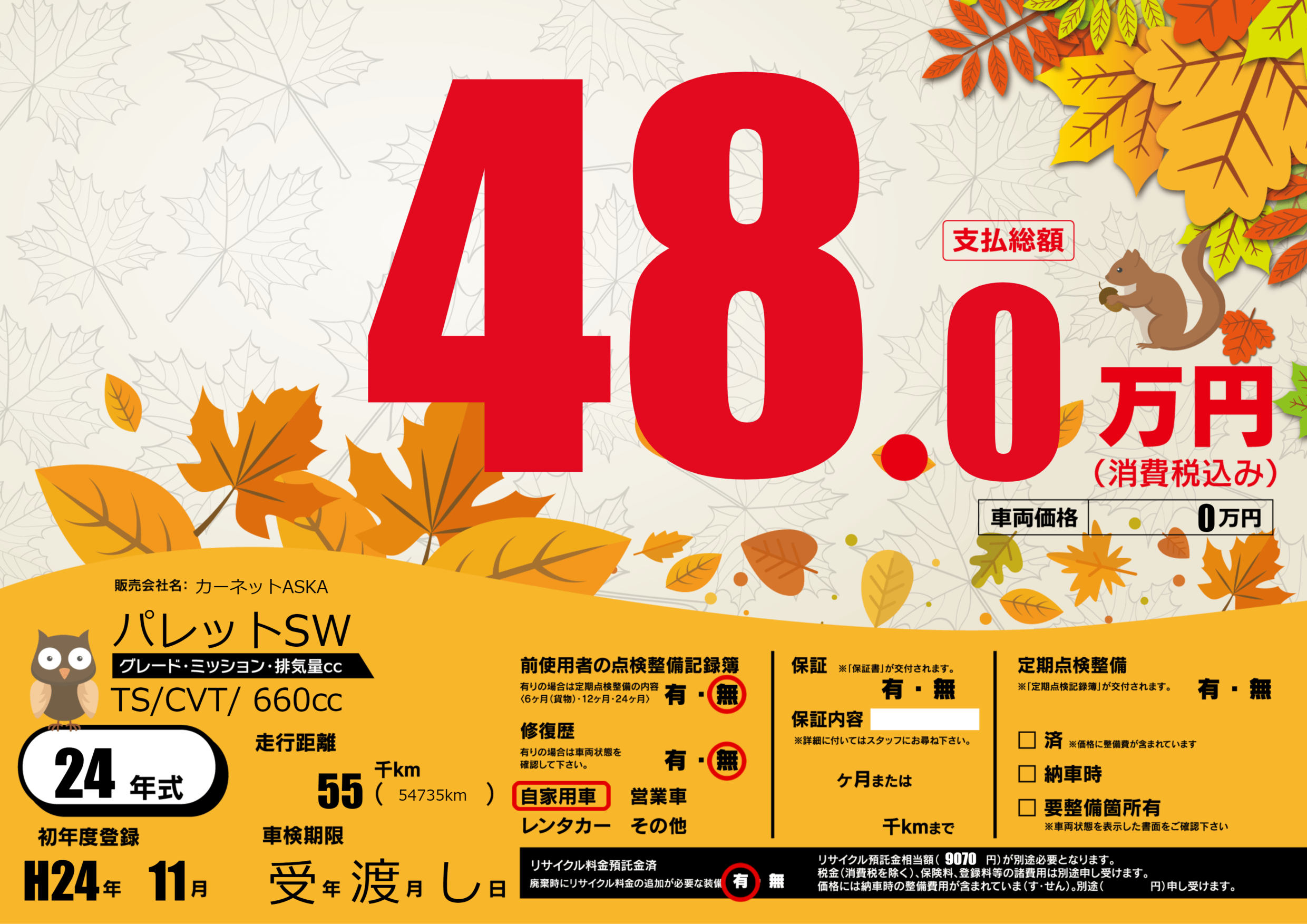 | 車名 | パレットSW | グレード ミッション 排気量 |