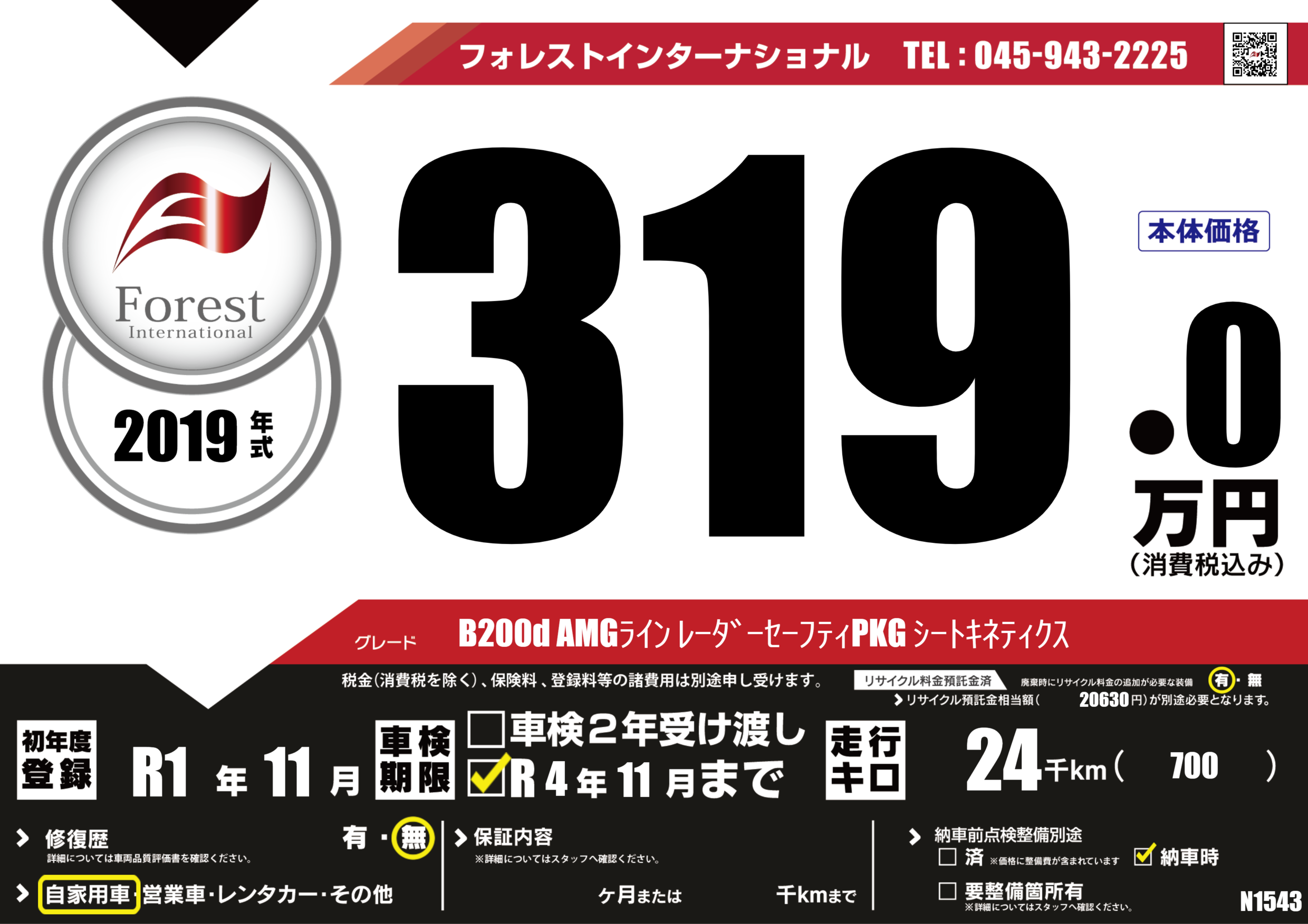 | 走行キロ | 2.4万km | 初年度登録 | R1年11月 |