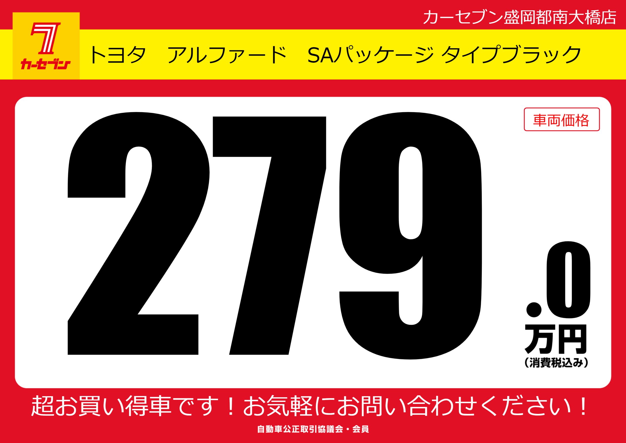 | 車名 | トヨタ アルファード SAパッケージ タイプブラック | グレード ミッション 排気量 |