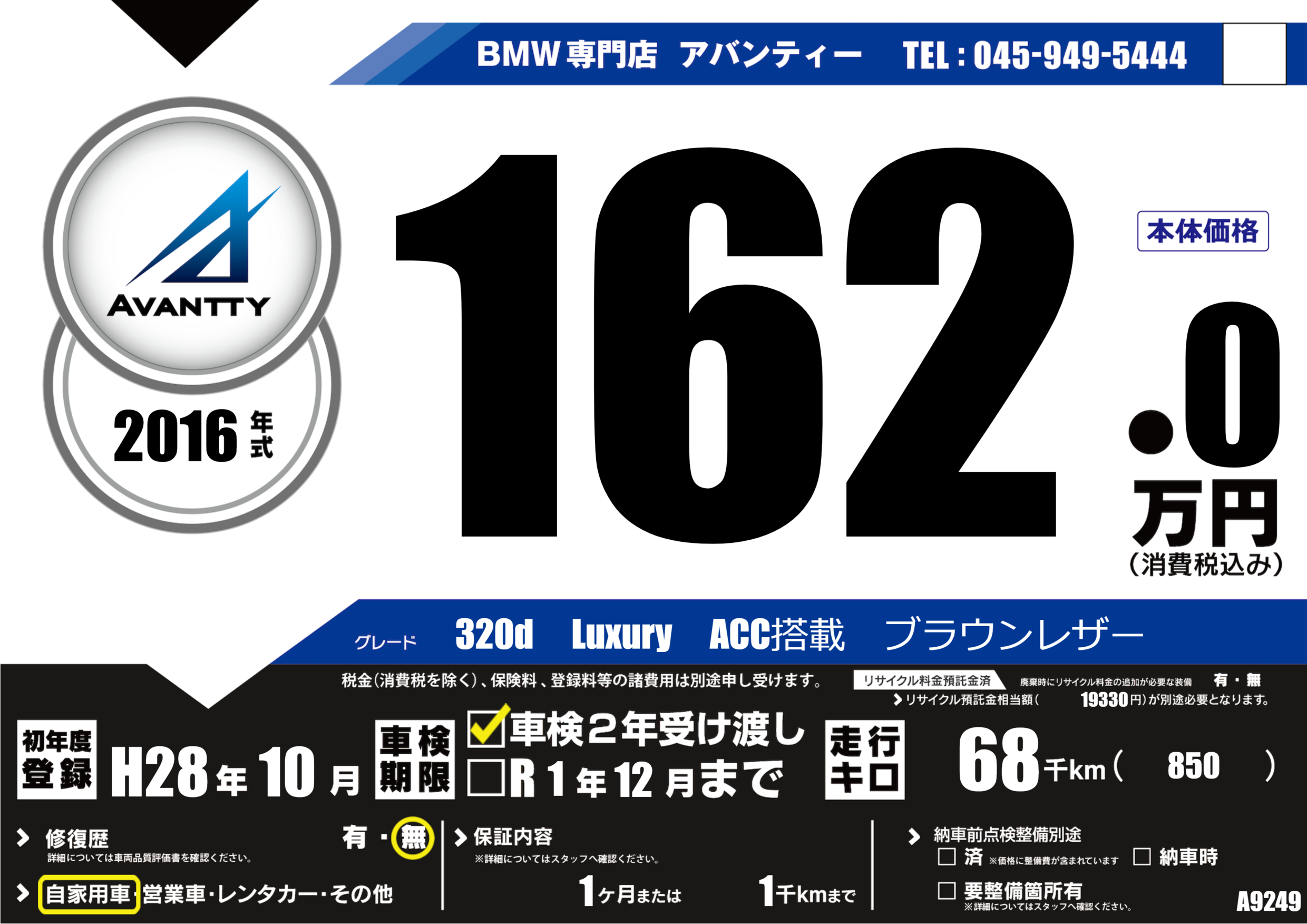 | 走行キロ | 6.8万km | 初年度登録 | H28年10月 |