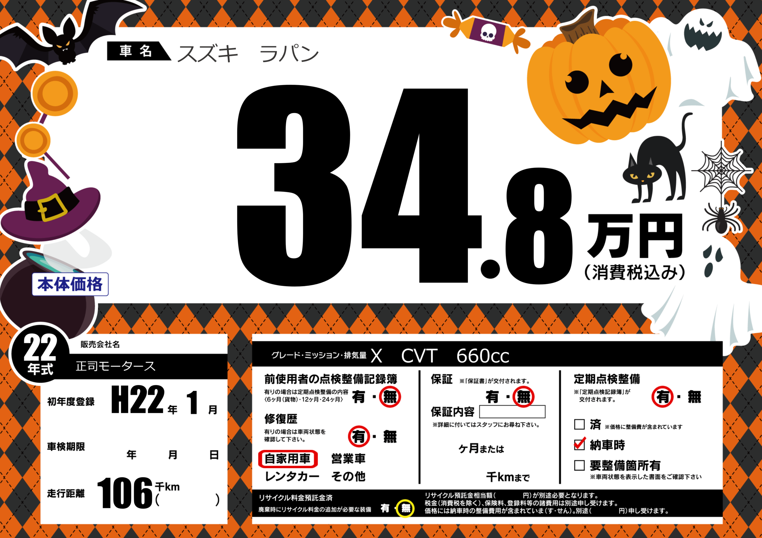 | 走行キロ | 10.6万km | 初年度登録 | H22年1月 |