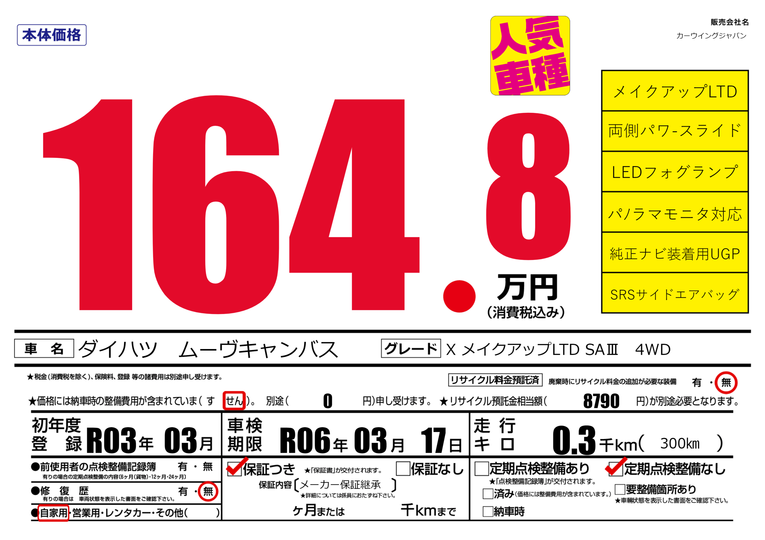 | 車検制限 | R06年 03月 17日 | ||