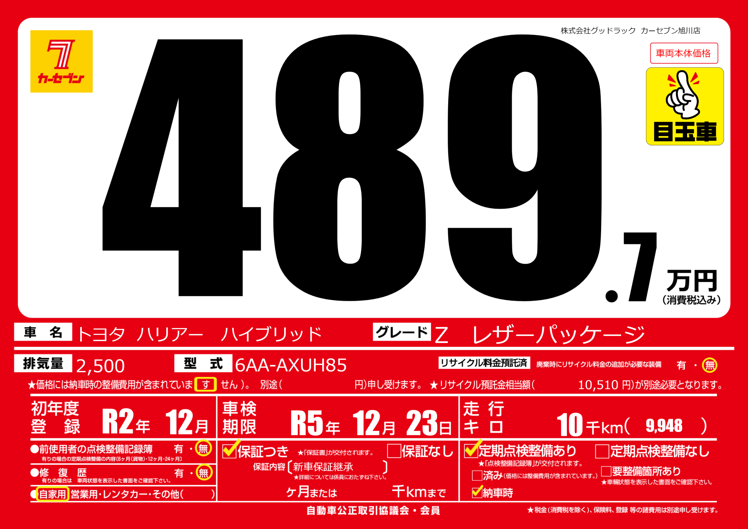 | 車検制限 | R5年 12月 23日 | ||