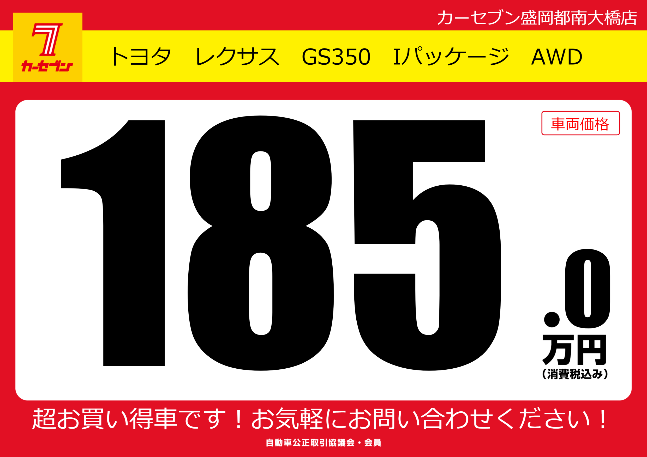 | 車名 | トヨタ レクサス GS350 Iパッケージ AWD | グレード ミッション 排気量 |